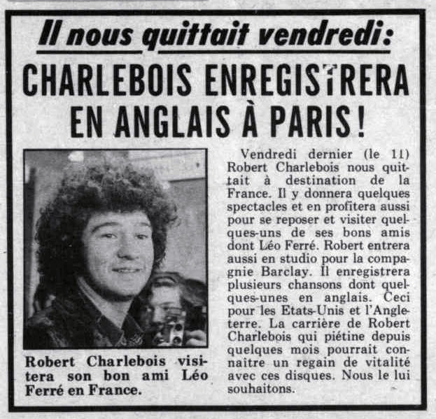 • Il nous quittait vendredi : Charlebois enregistrera en anglais à Paris !
