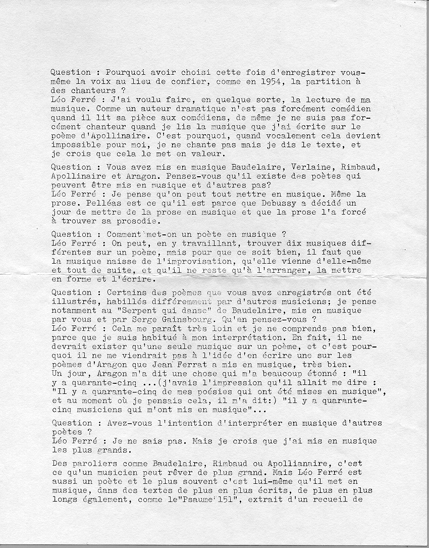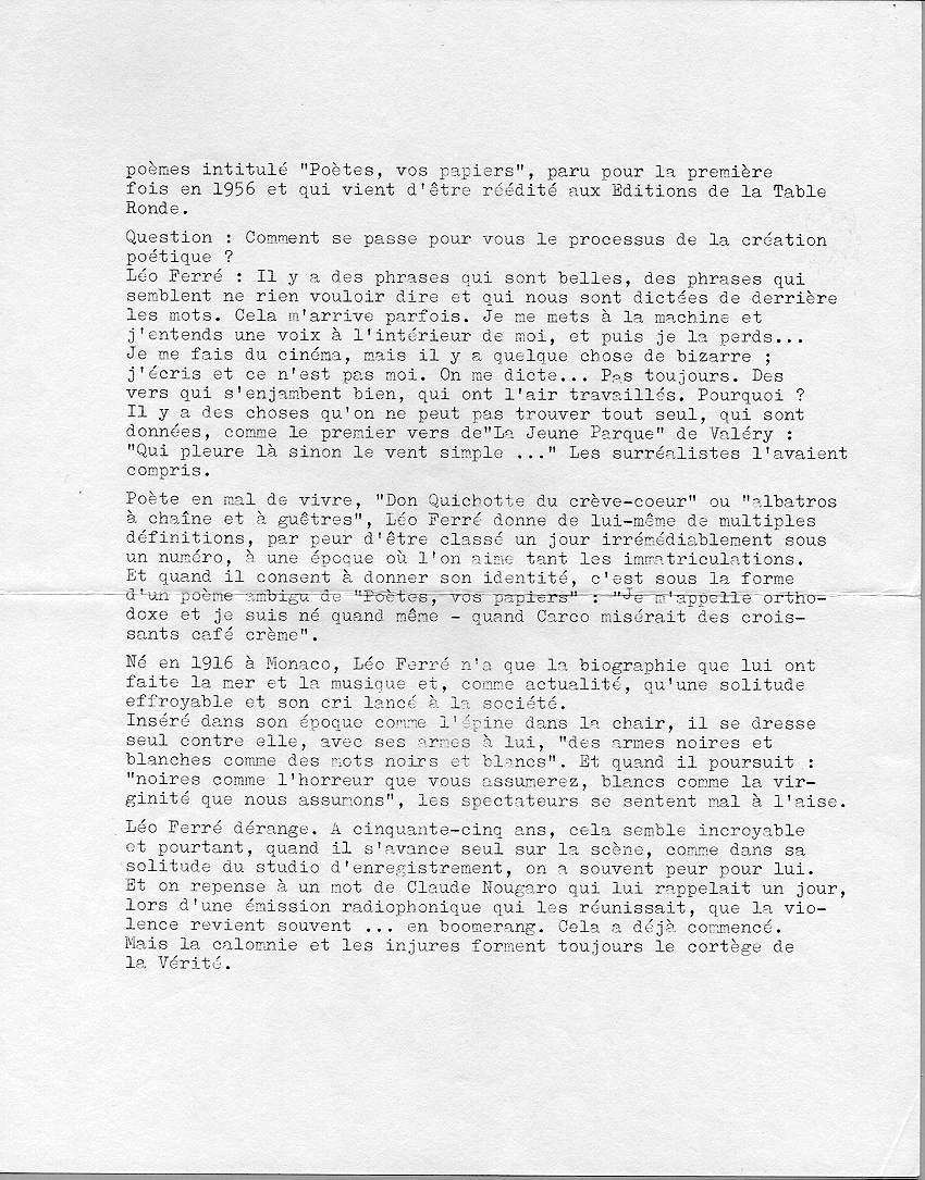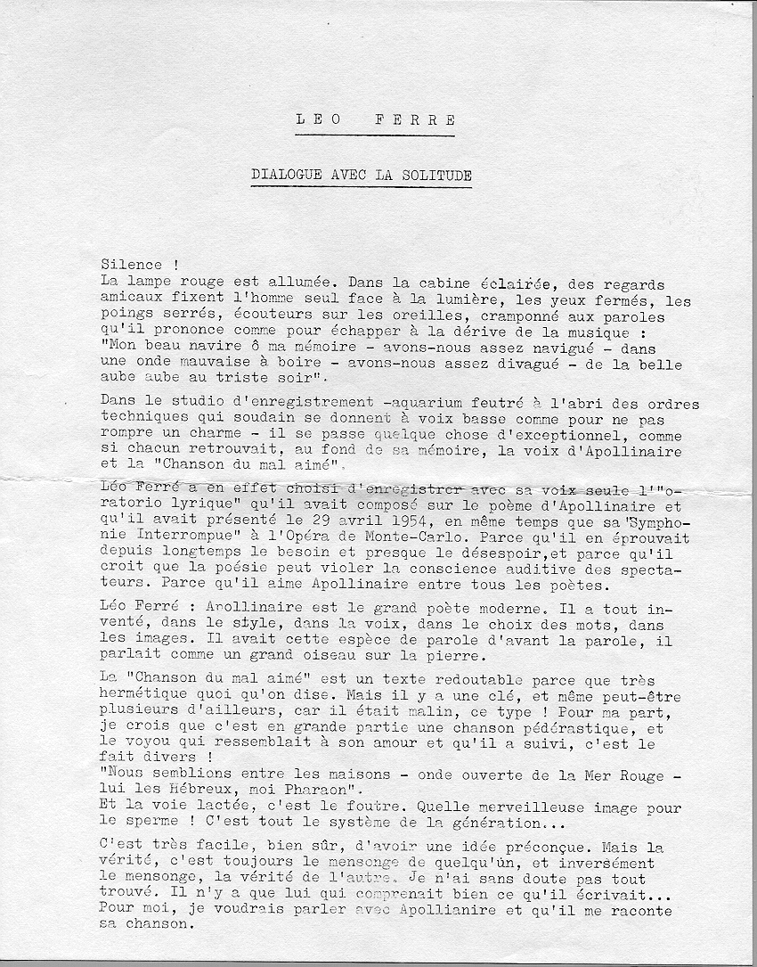 .../... Léo Ferré chante Je vois le monde un peu.