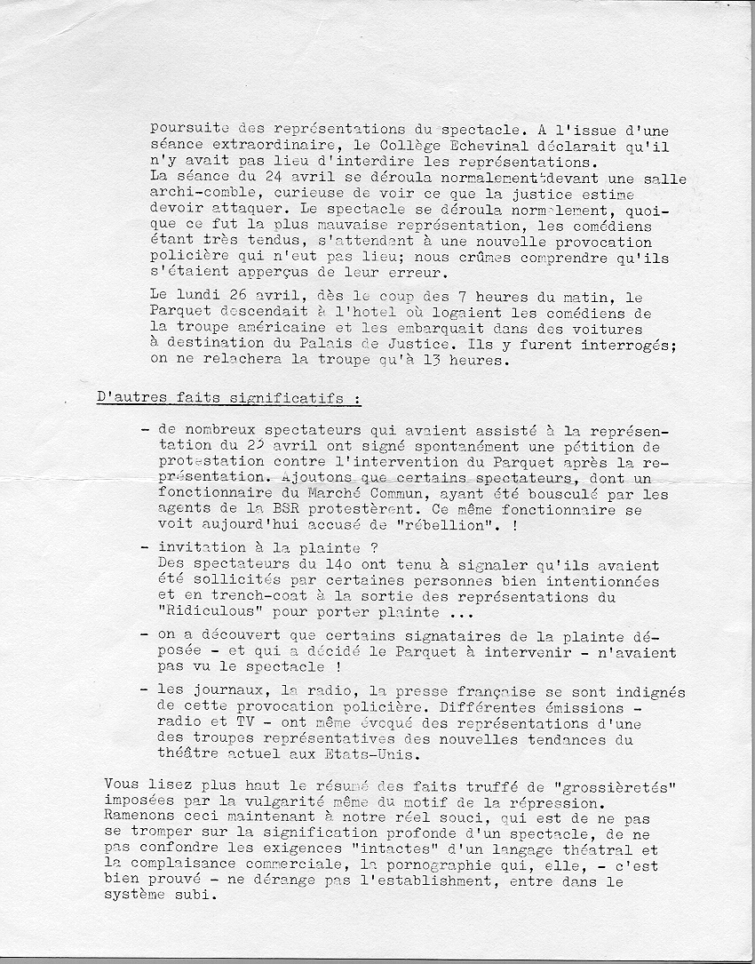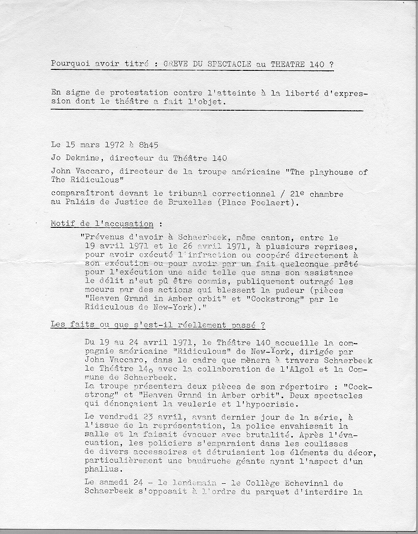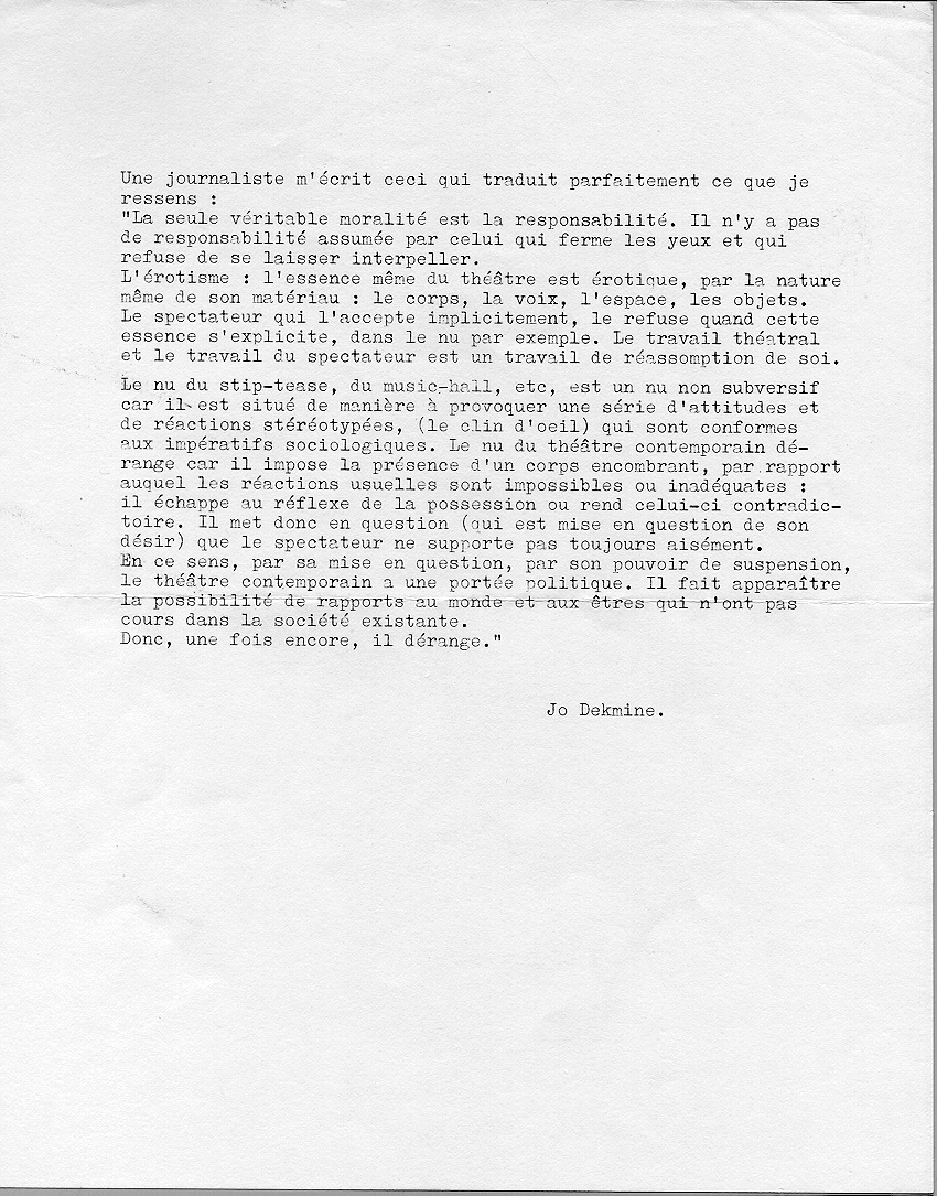 Texte de protestation de Jo Dekmine contre l'atteinte à la liberté d'expression dont le théâtre fait l'objet.