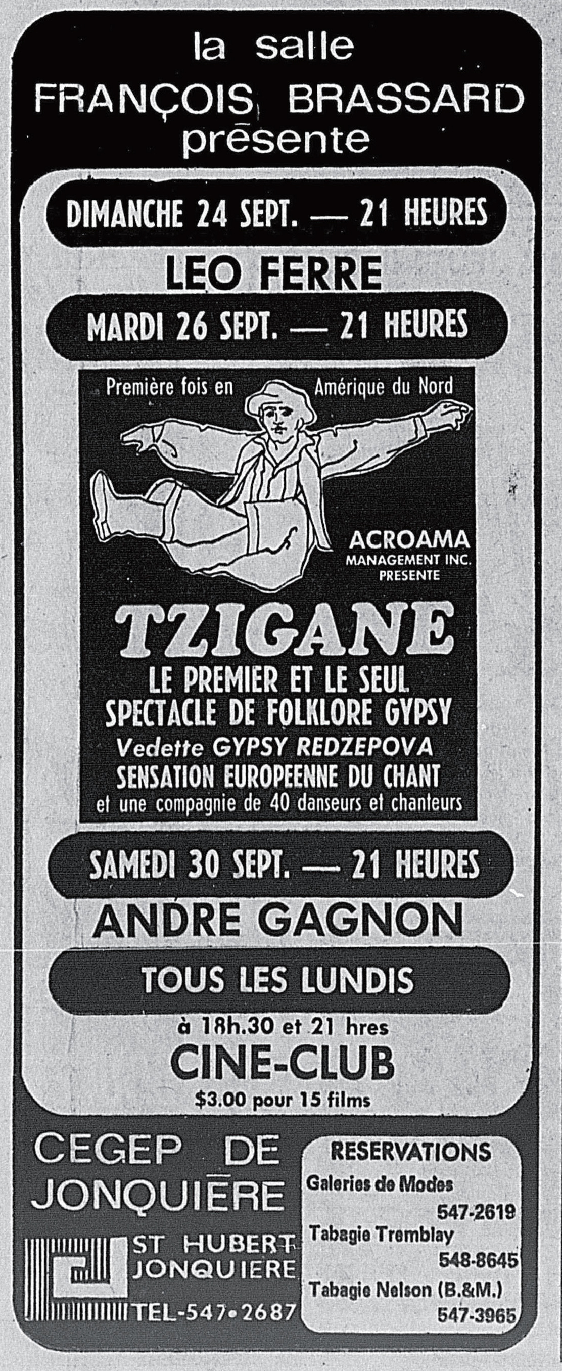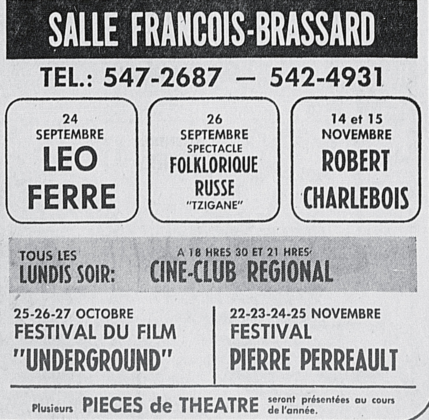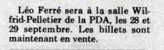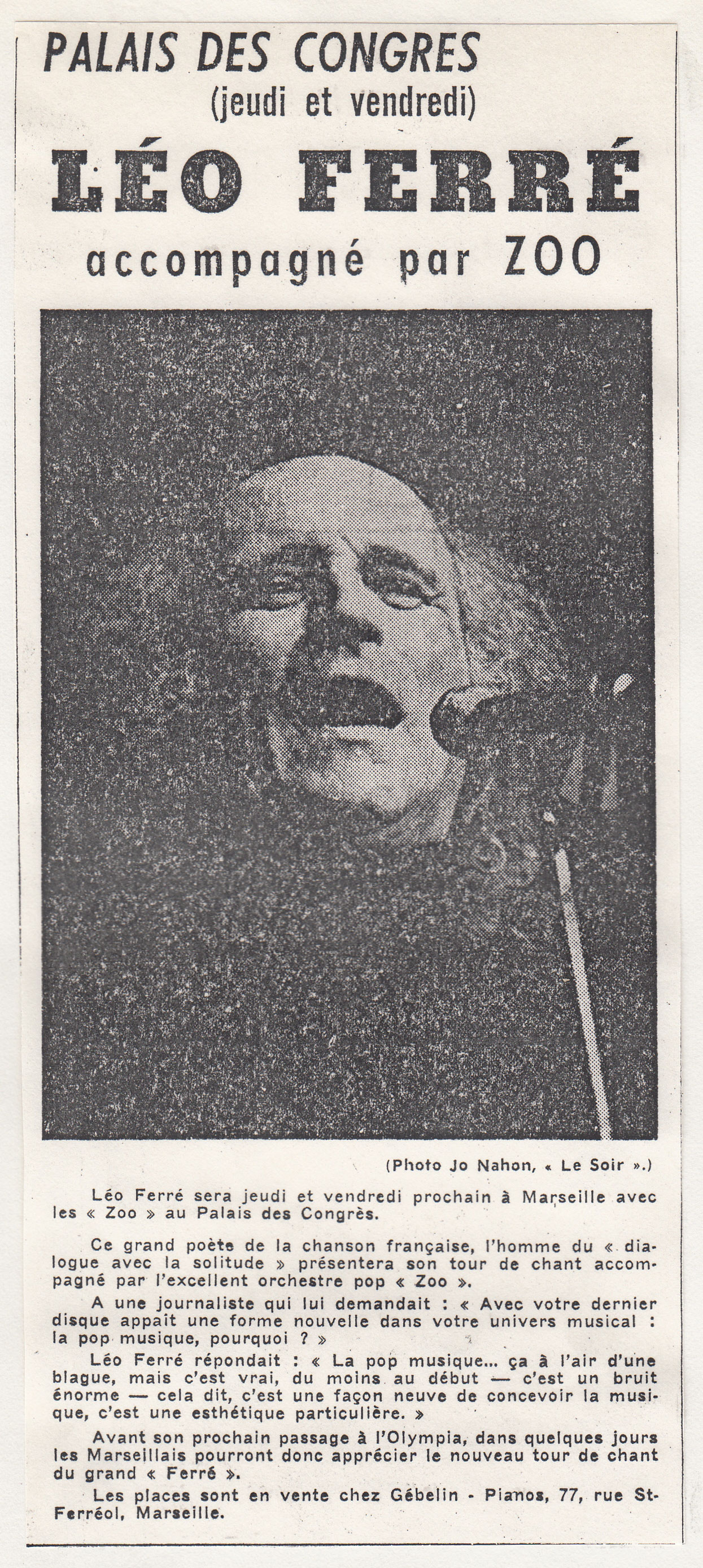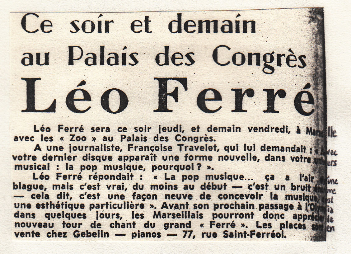 • Palais des congrès (jeudi et vendredi) Léo Ferré accompagné par Zoo