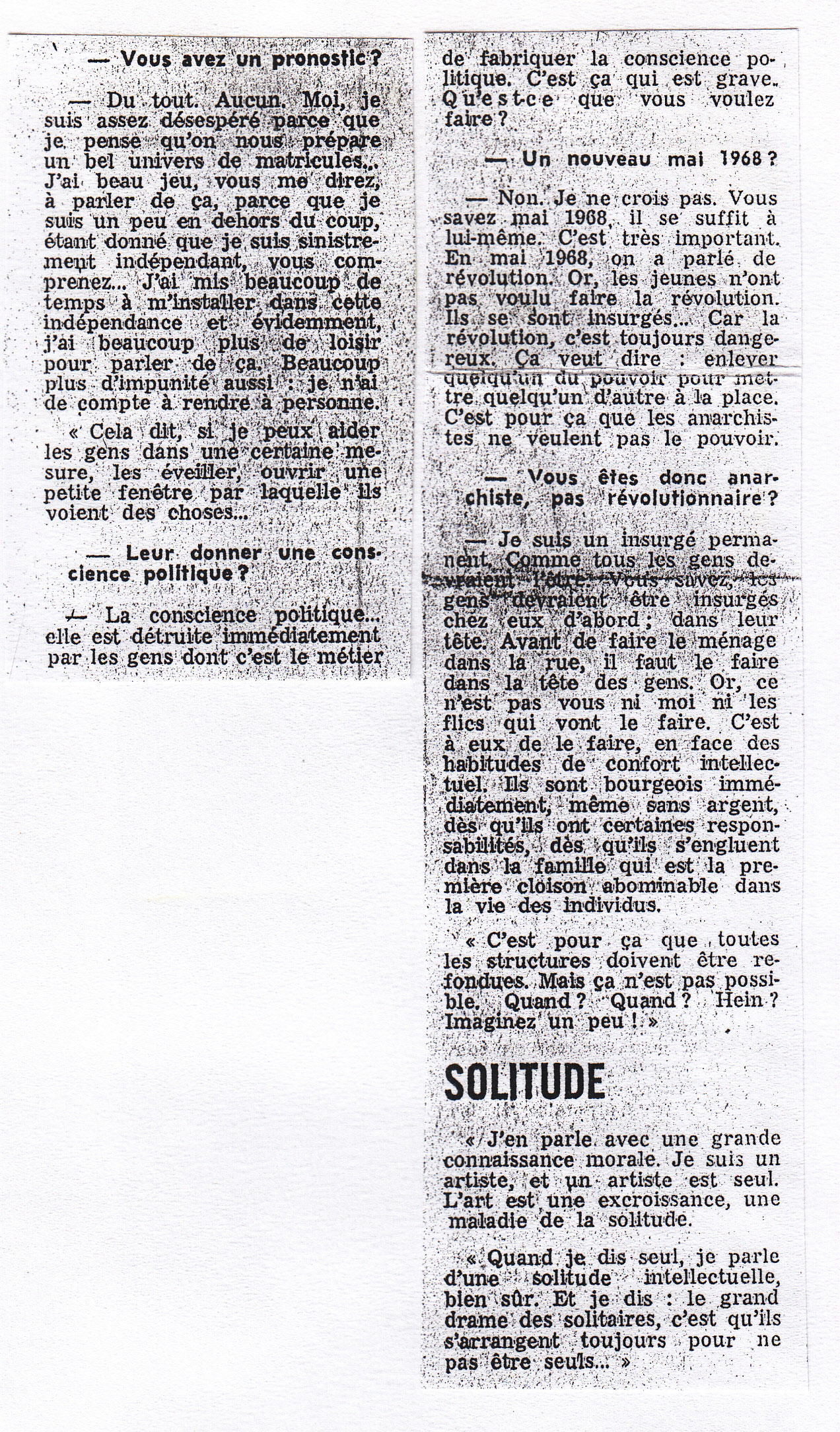 1972 début d'année : Improvisation au piano - ITW (album La solitude)