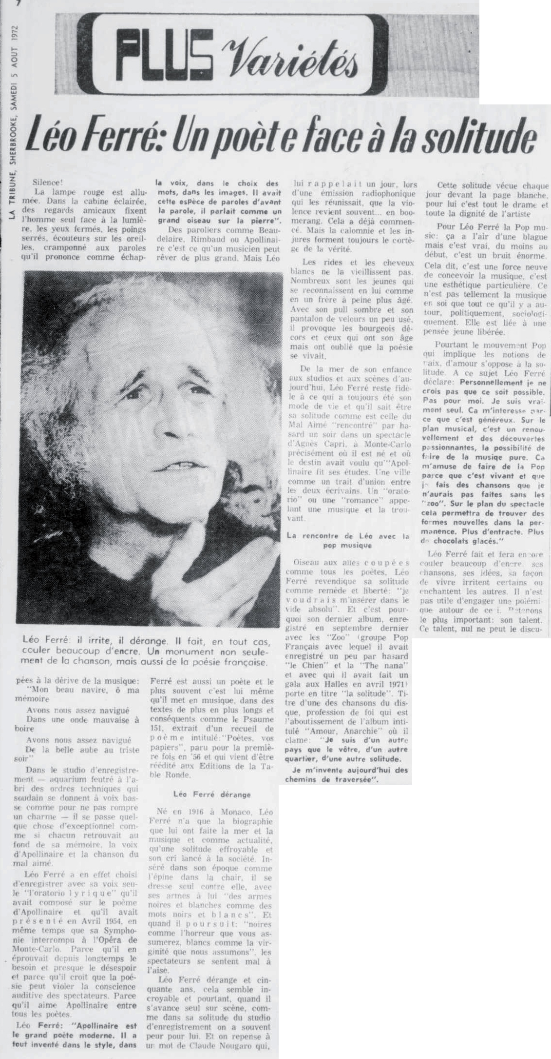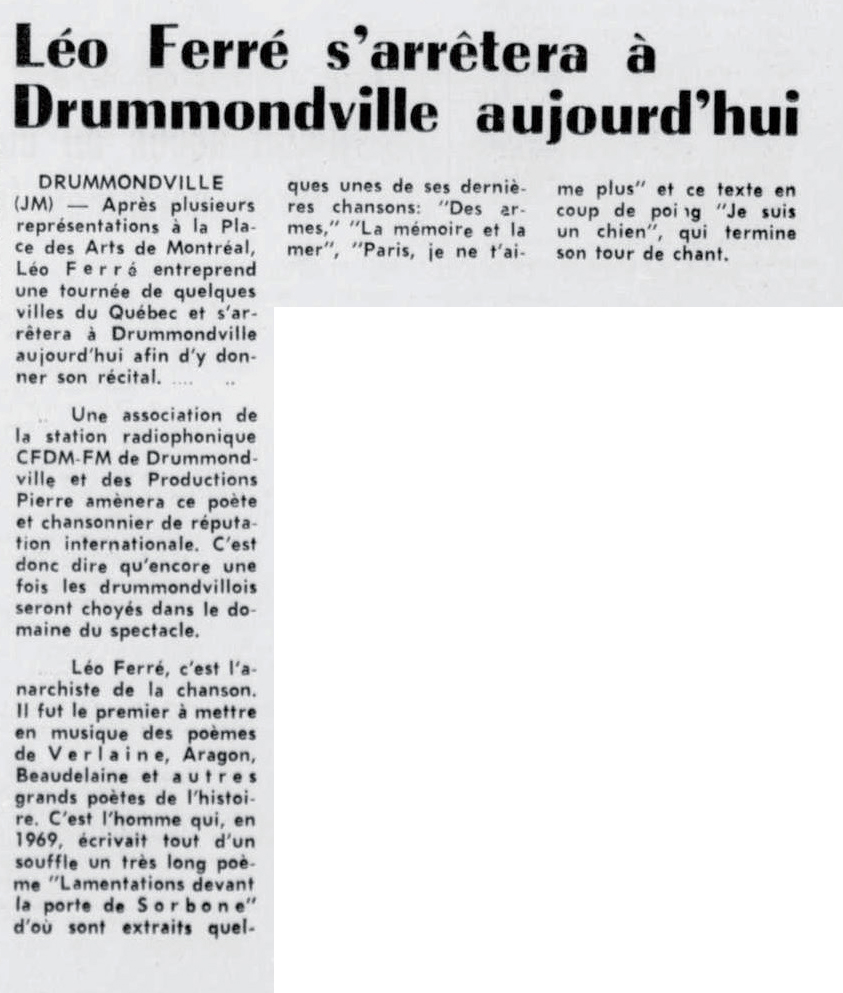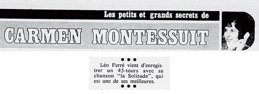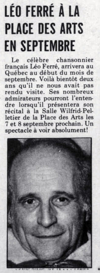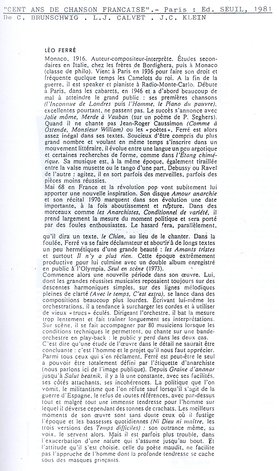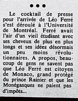 PS: Léo Ferré est né le 24 août 1916 à Monaco et décédé le 14 juillet 1993 à Castellina in Chianti (Toscane).