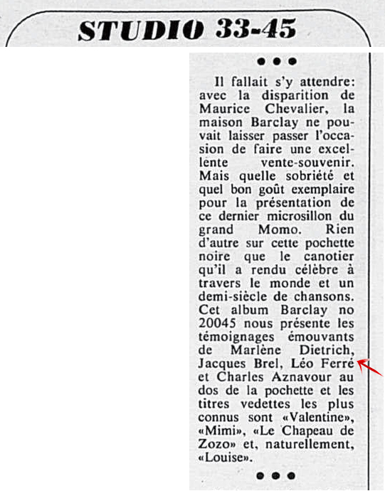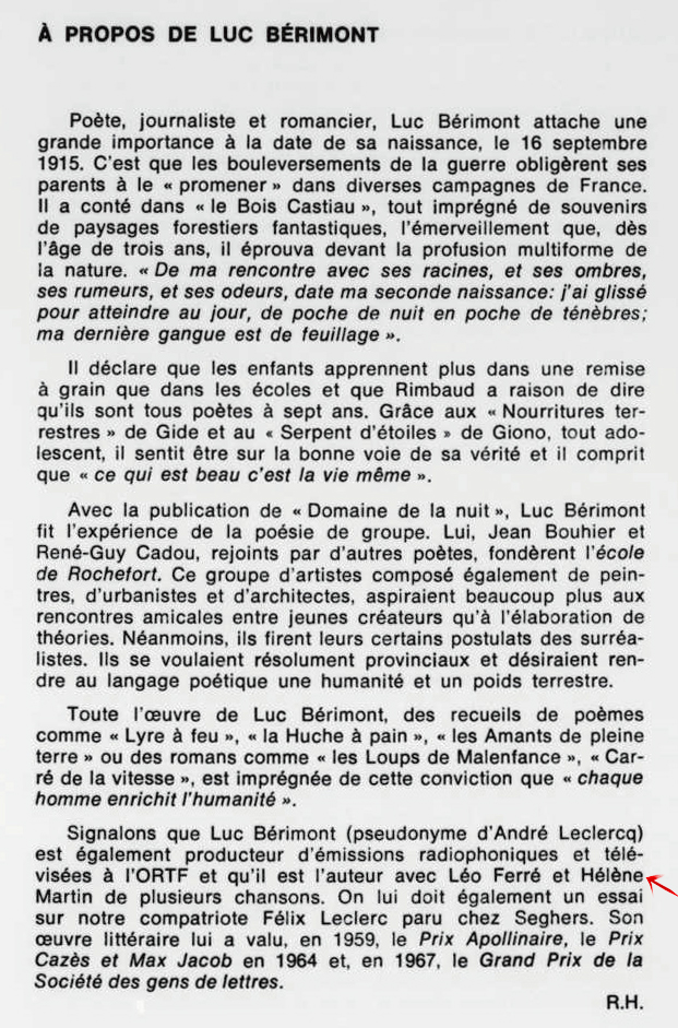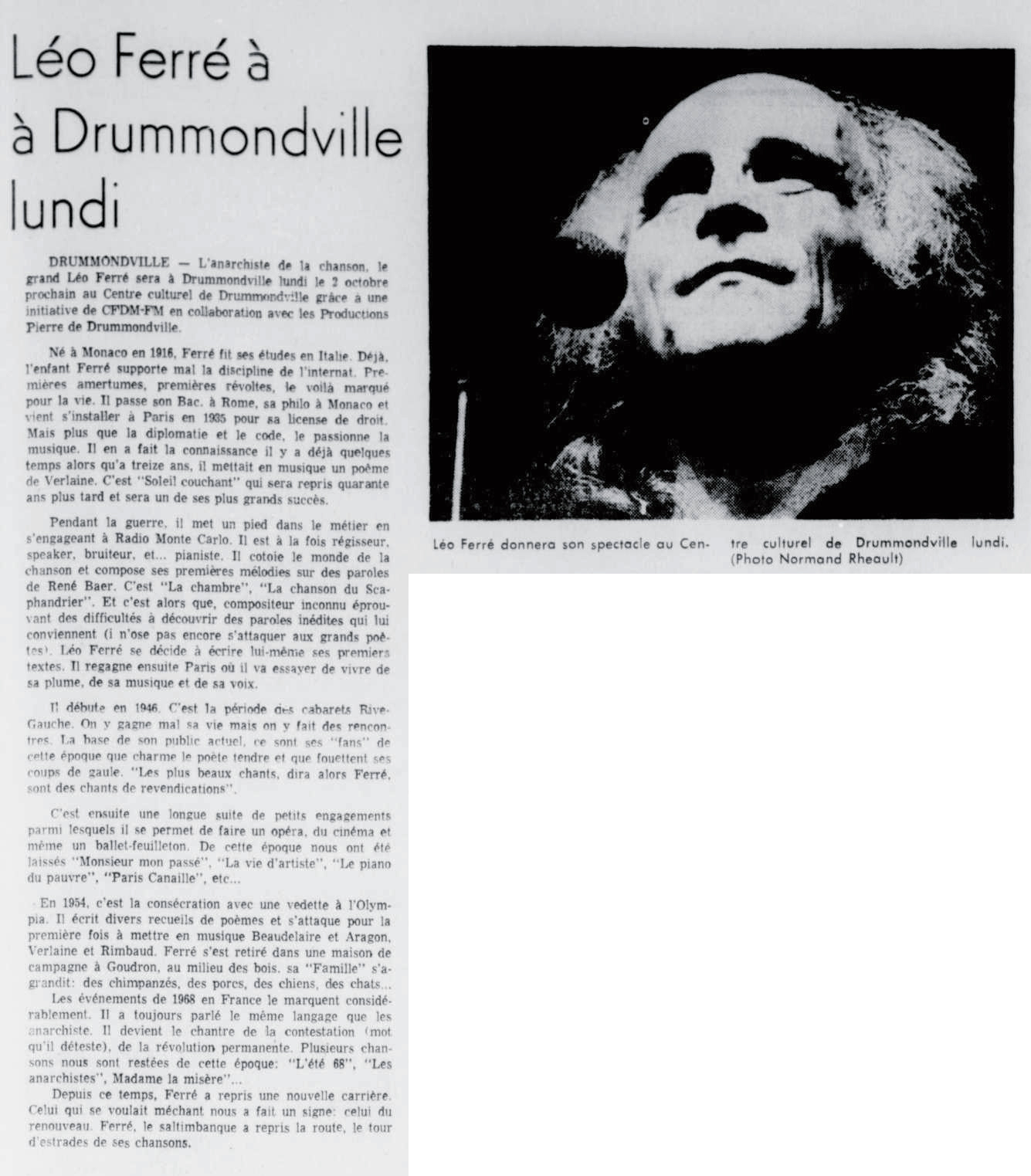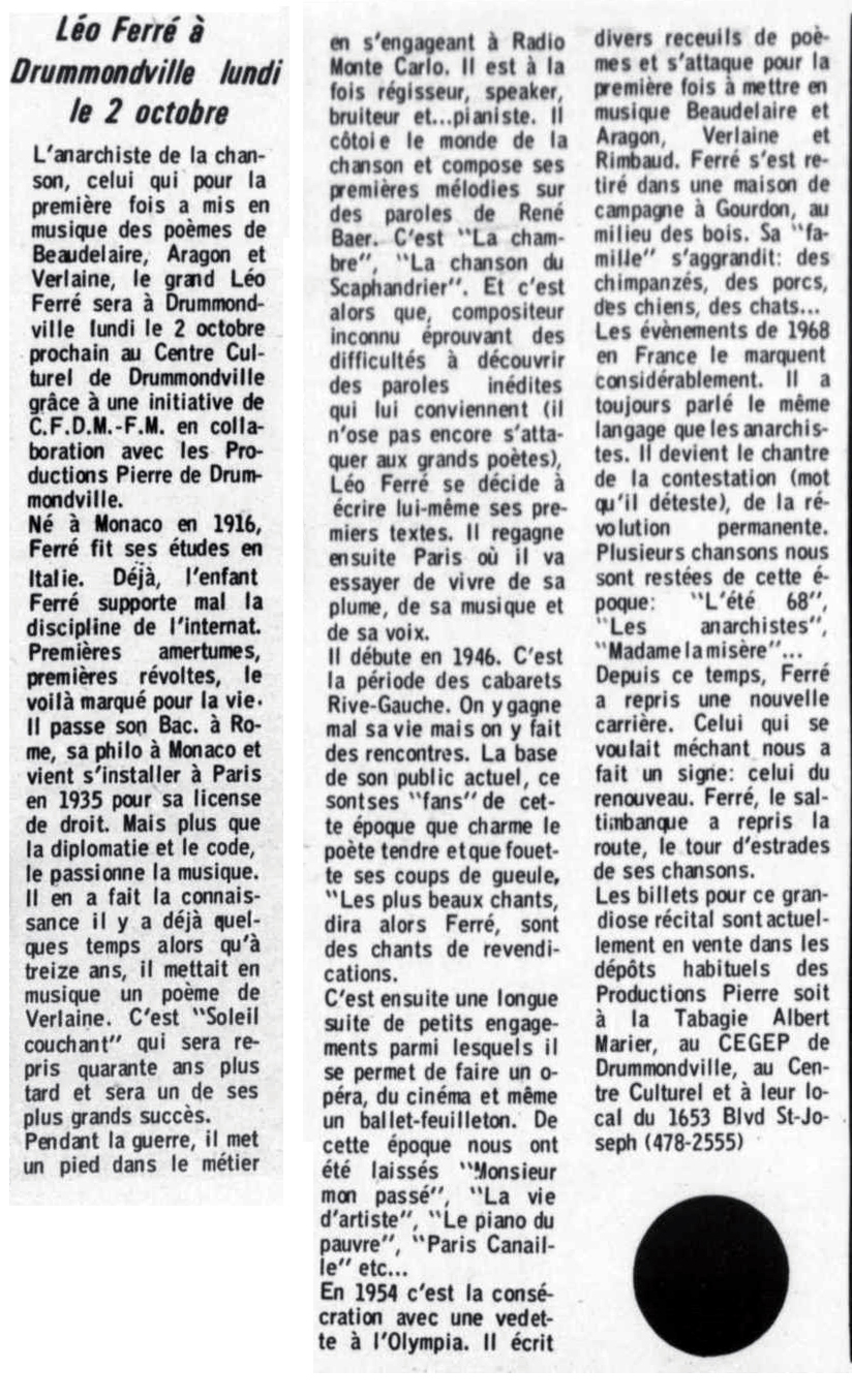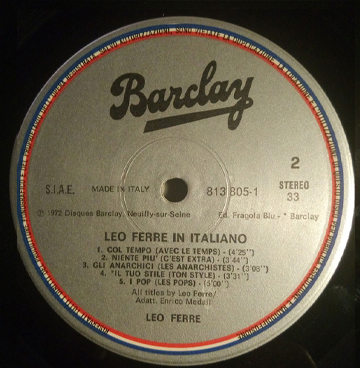 PS: Léo Ferré est né le 24 août 1916 à Monaco et décédé le 14 juillet 1993 à Castellina in Chianti (Toscane).