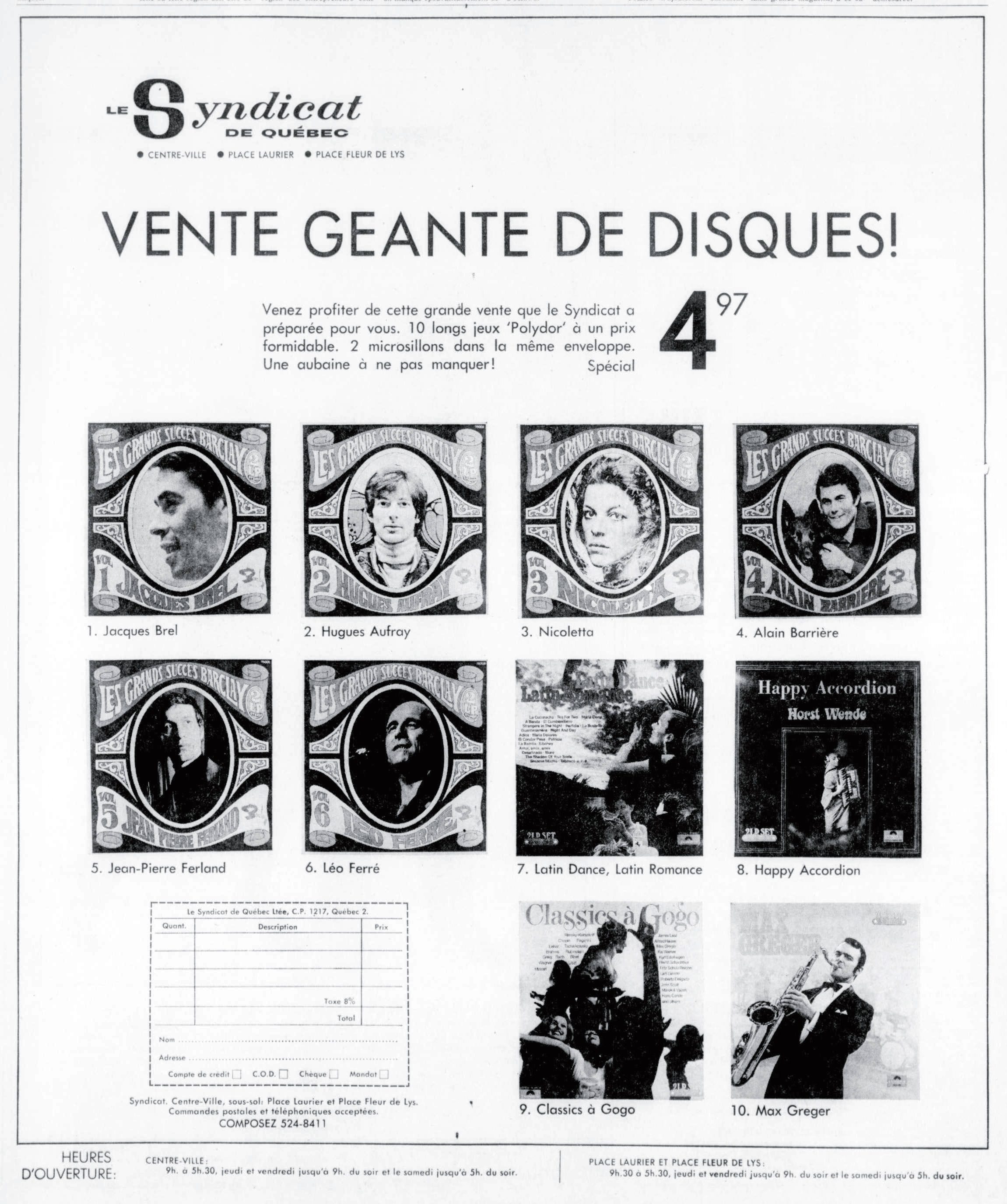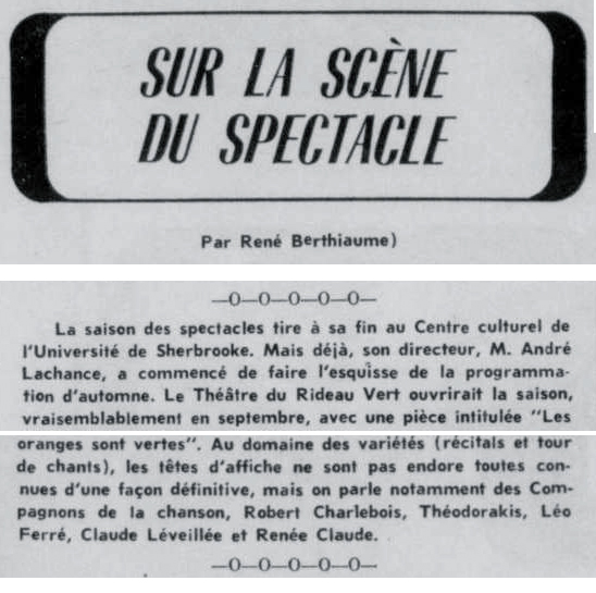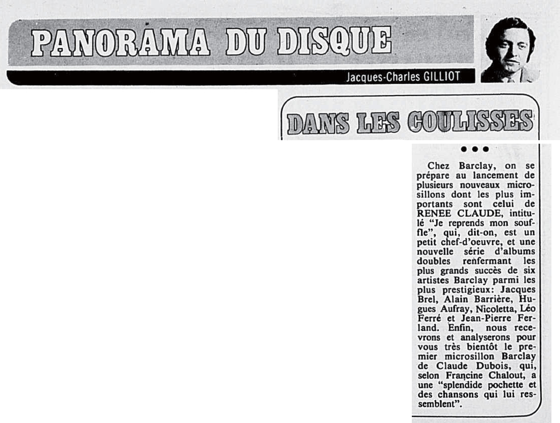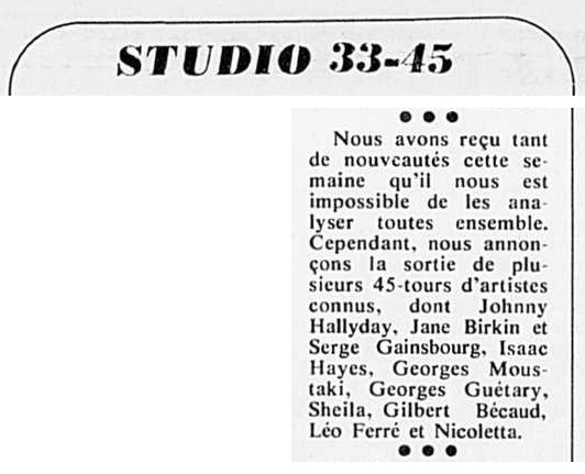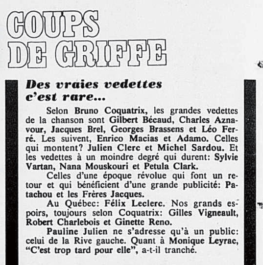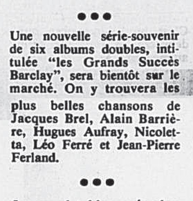 05.12 : Participation à l’émission Les dossiers de l’écran consacré à la chanson « Comment fabrique-t-on une vedette ? » en compagnie d’Eddie Barclay et de Bruno Coquatrix.