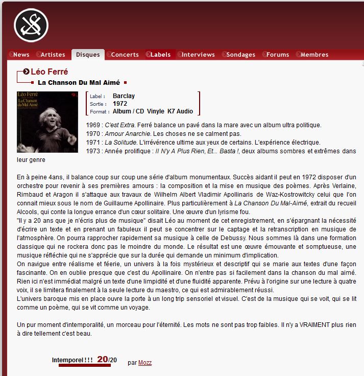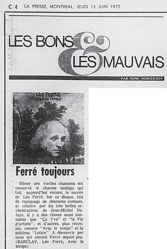 Résumé : .../... Léo Ferré chante Avec le temps