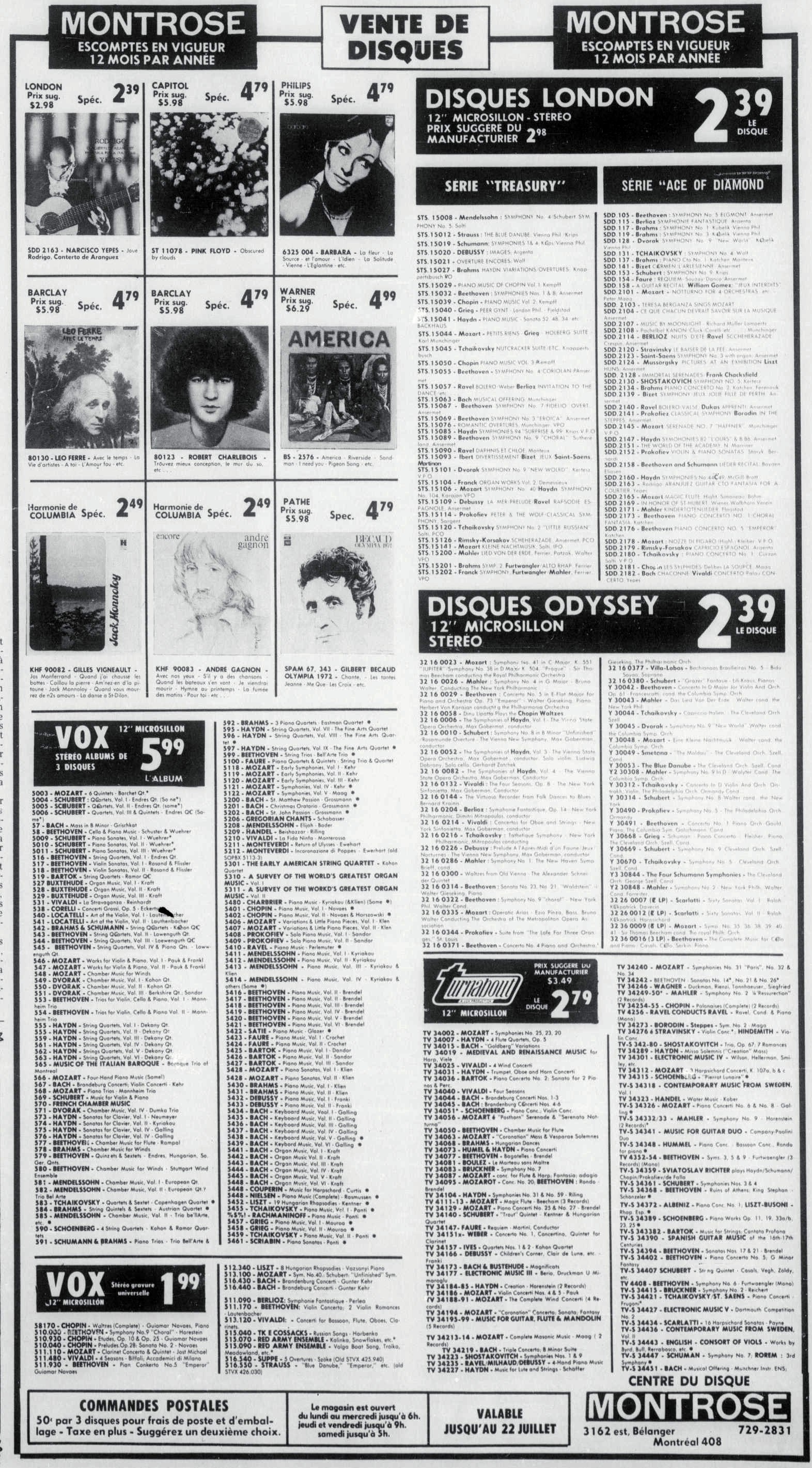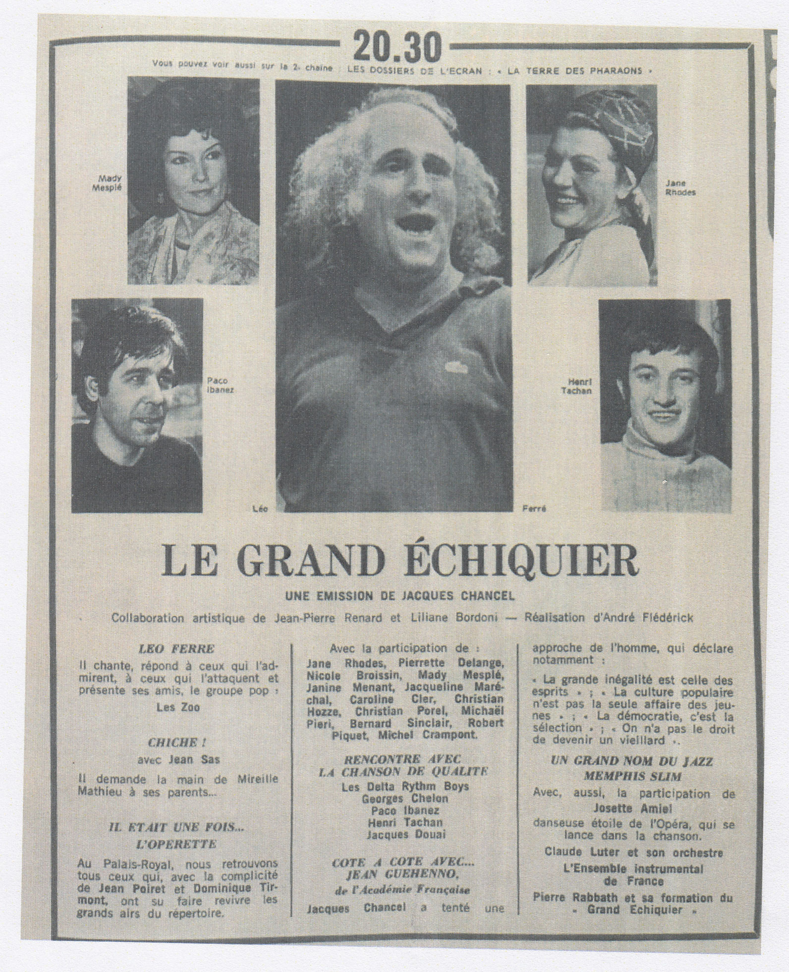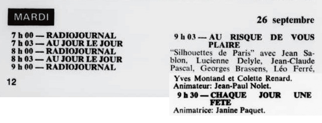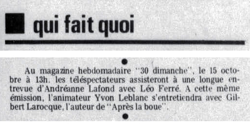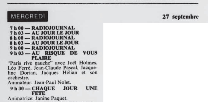 Carré bleu sur Europe n°1, émission de Jacques Paoli avec Léo Ferré (l'émission Carré Bleu, un concept précurseur des émissions d'aujourd'hui qui mêlait actualité, commentaires, variétés, faits de société, etc. et qui durait tout l'après-midi).