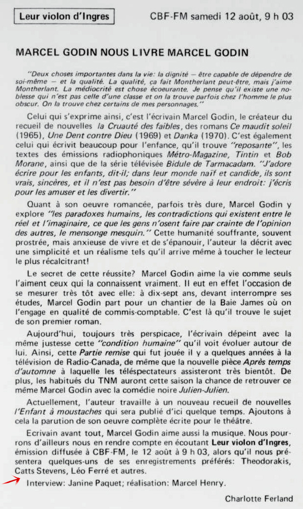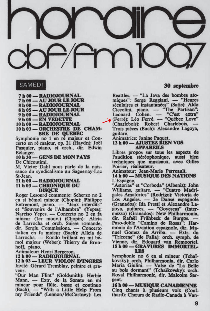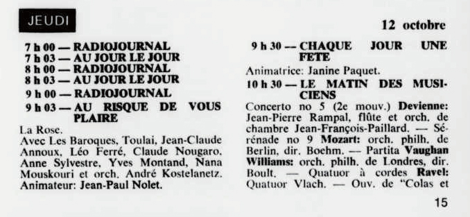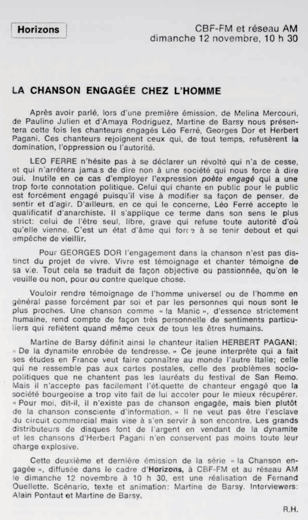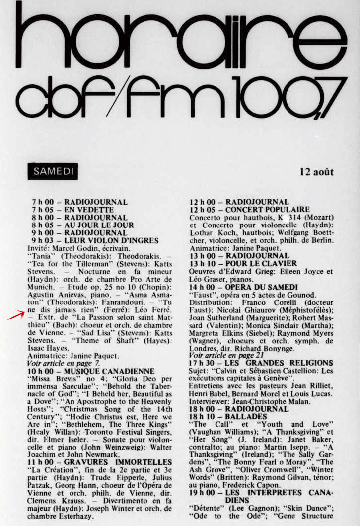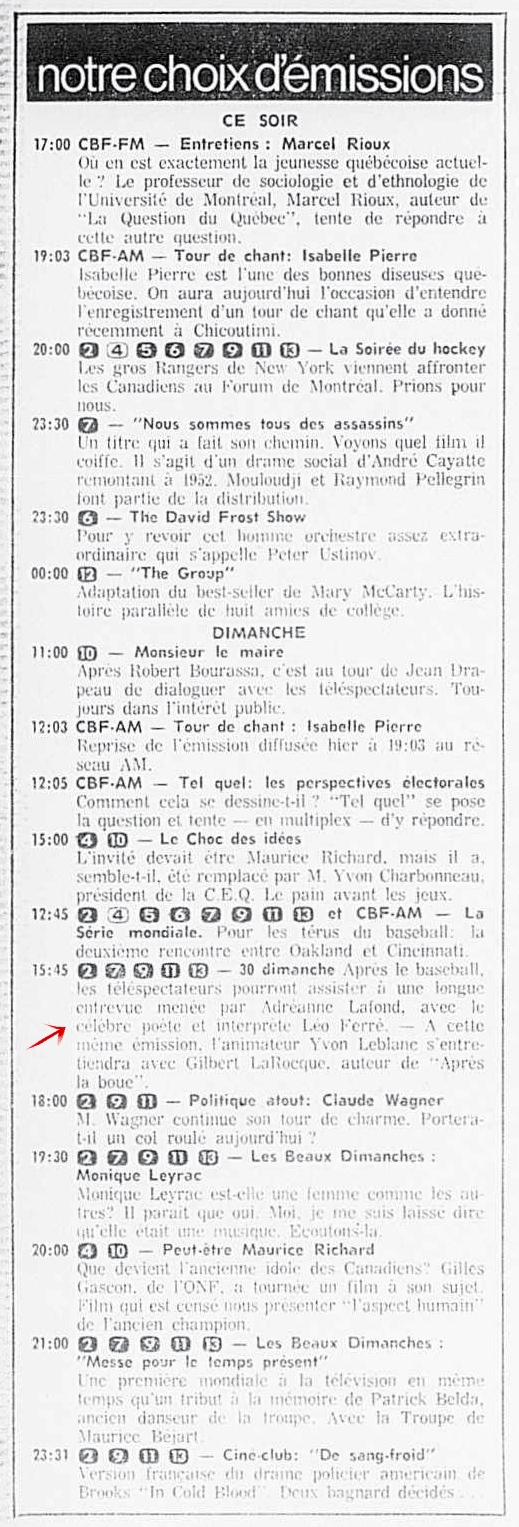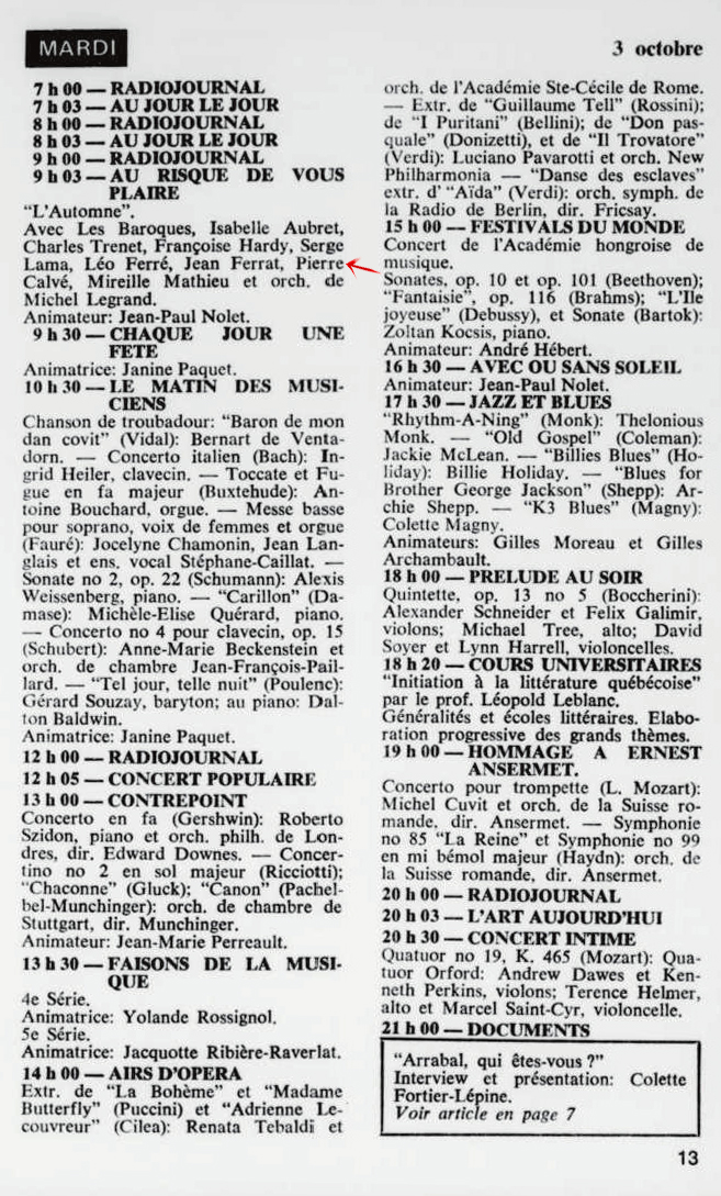11.11 : Ici Radio-Canada, 1966-1985, 11 novembre 1972, RADIO