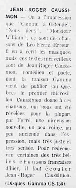.../... Jean Roger Caussimon chante À Ostende (Caussimon-Ferré). .../...