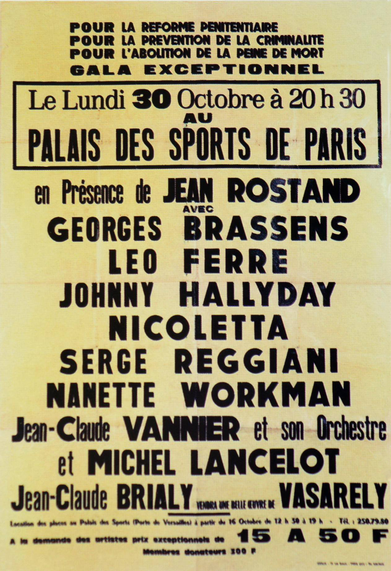 C'était le 30 octobre 1972. Il était annoncé sur "Télé-Poche" la retransmission à la télévision du "Grand gala pour la réforme pénitentiaire, pour la prévention de la criminalité, pour l'abolition de la peine de mort". Les invités se nommaient, excusez-moi du peu :