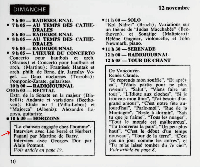 Horizons, interview avec Léo Ferré et Herbert Pagani par Martine de Barsy - Radio