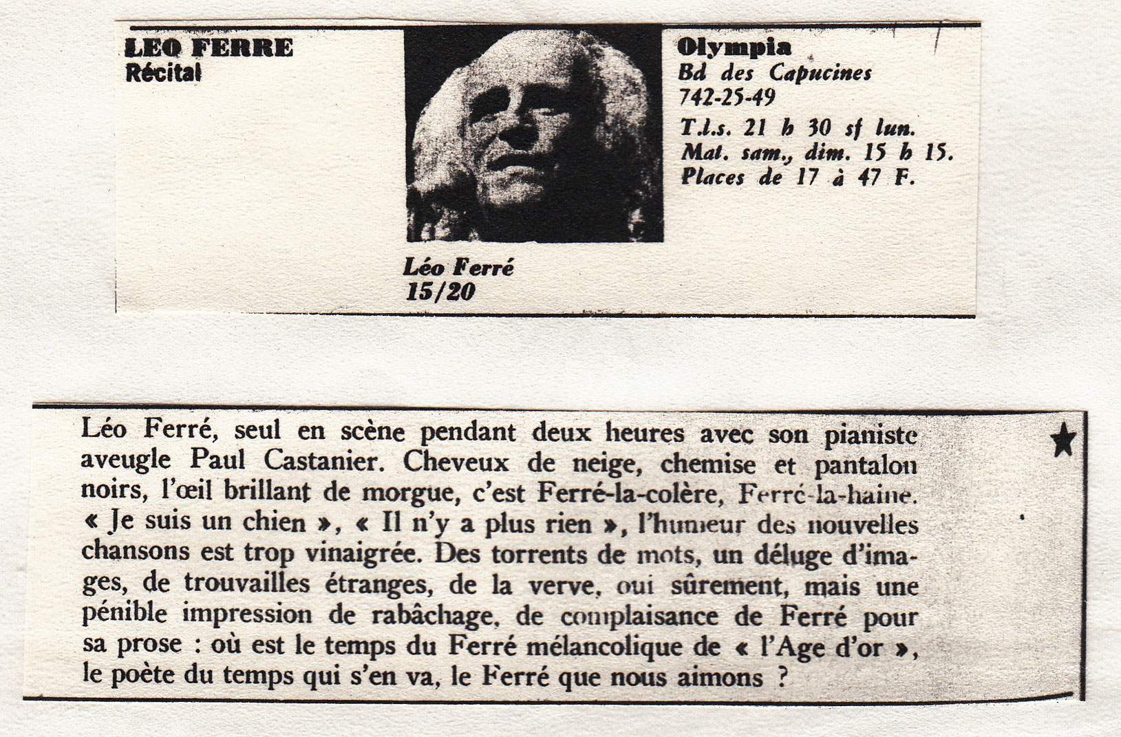 • Léo Ferré récital - Olympia