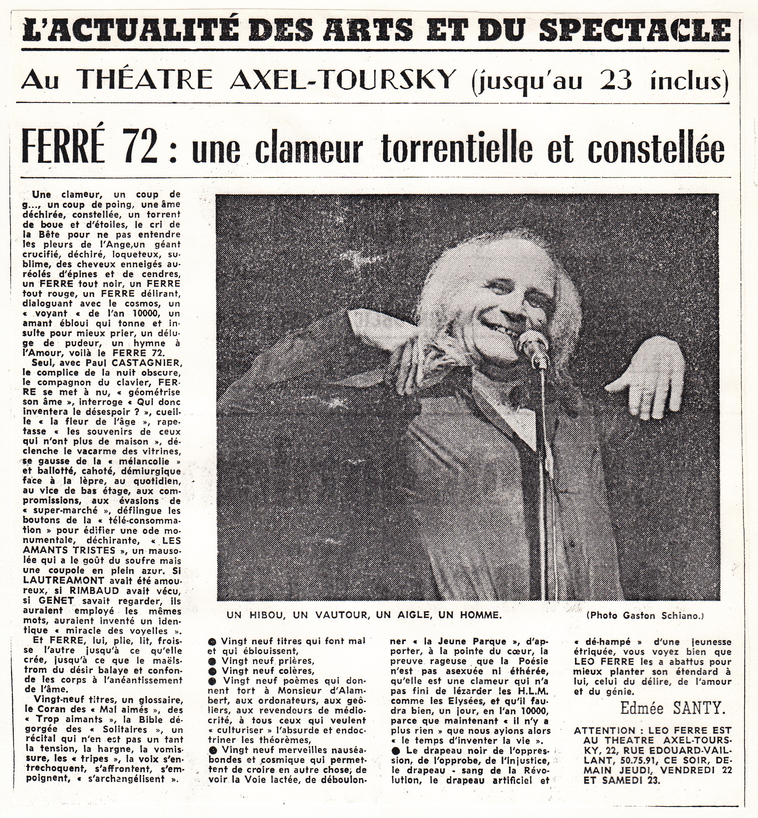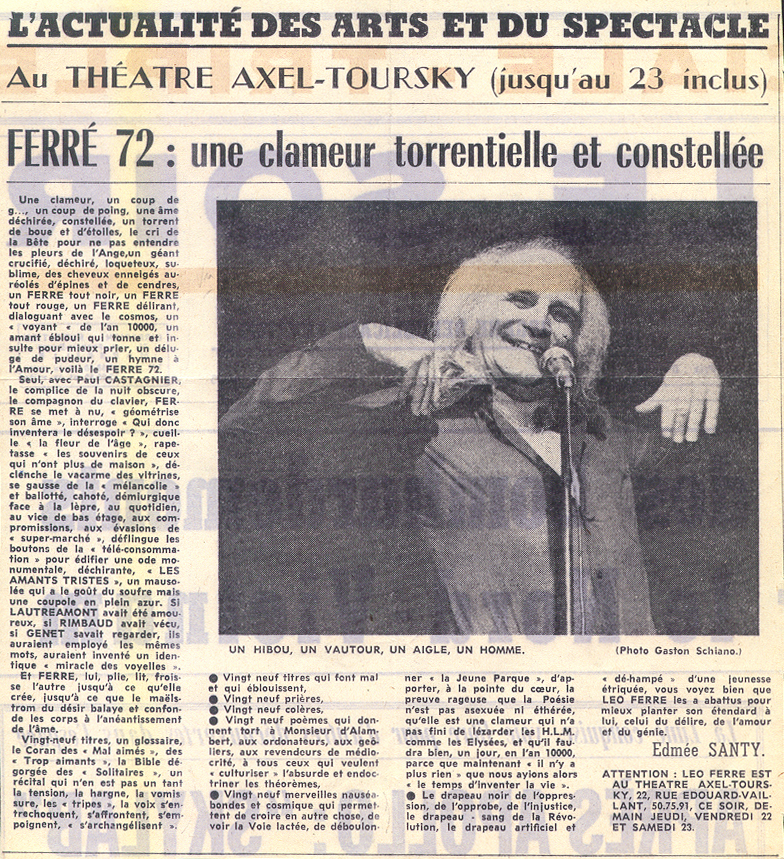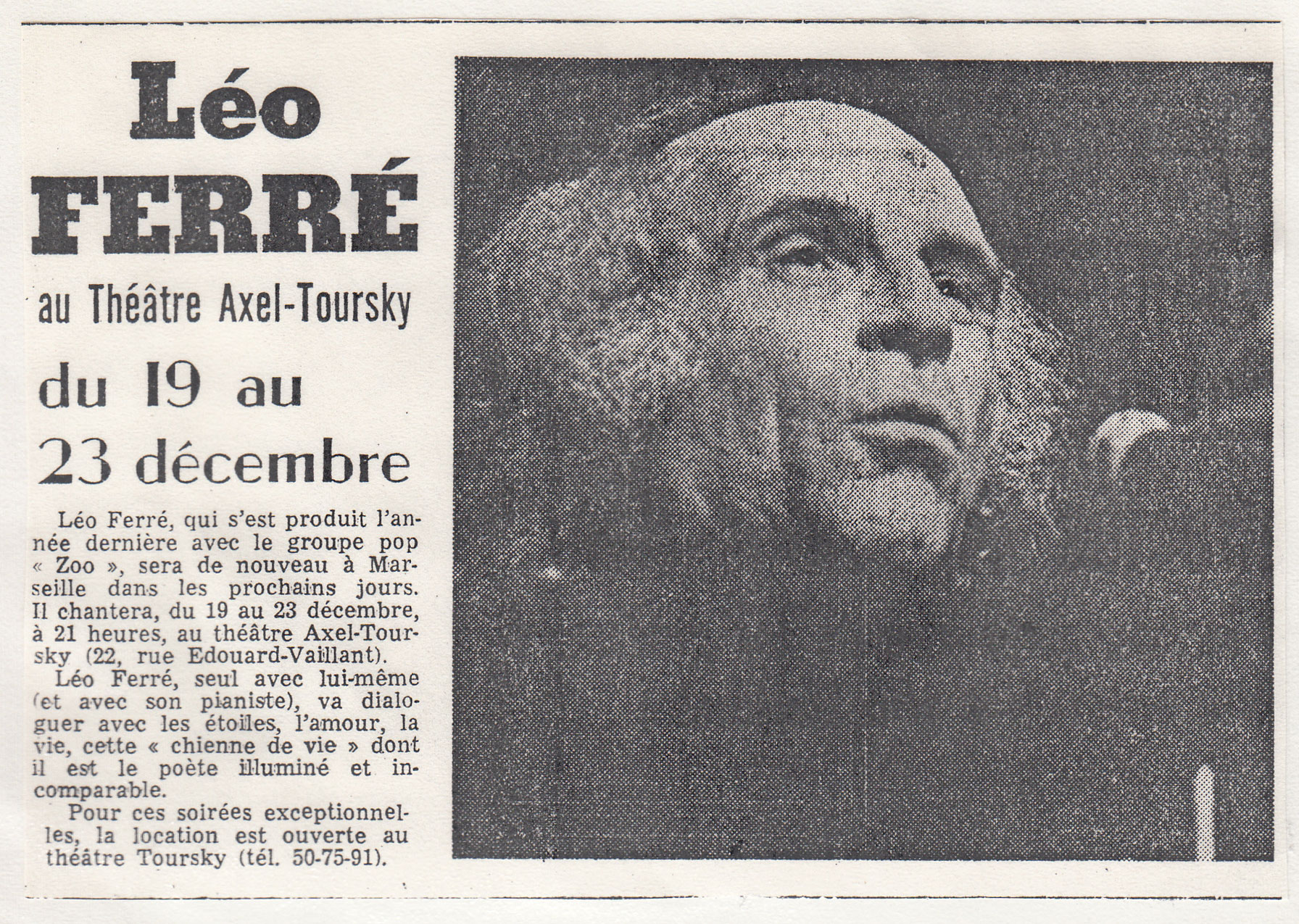 • Léo Ferré au Théâtre Axel-Toursky du 19 au 23 décmbre
