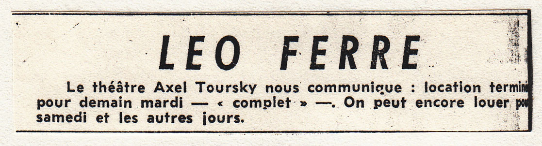 • Léo Ferré s'installe à l'Olympia