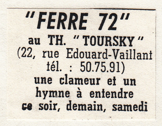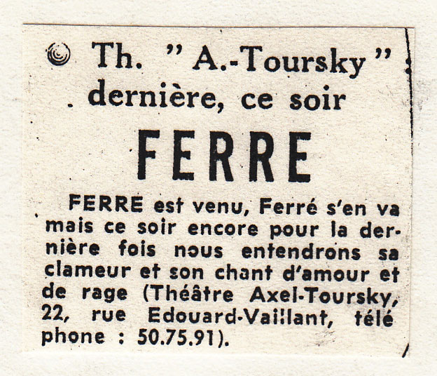 • Th. "A. Toursky" dernière, ce soir - Ferré