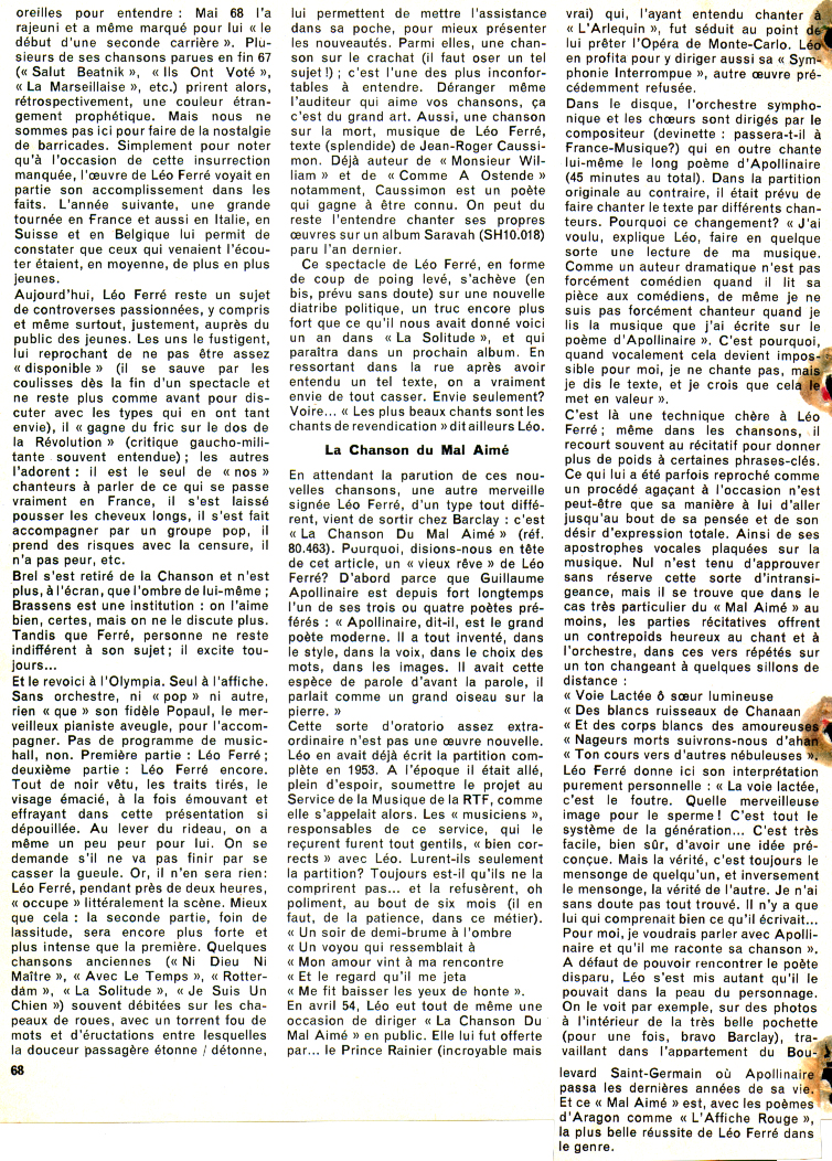 En janvier, Léo dirige et enregistre La Chanson du Mal-Aimé au studio Barclay, avenue Hoche à Paris (deuxième partie).