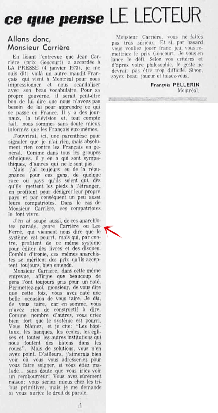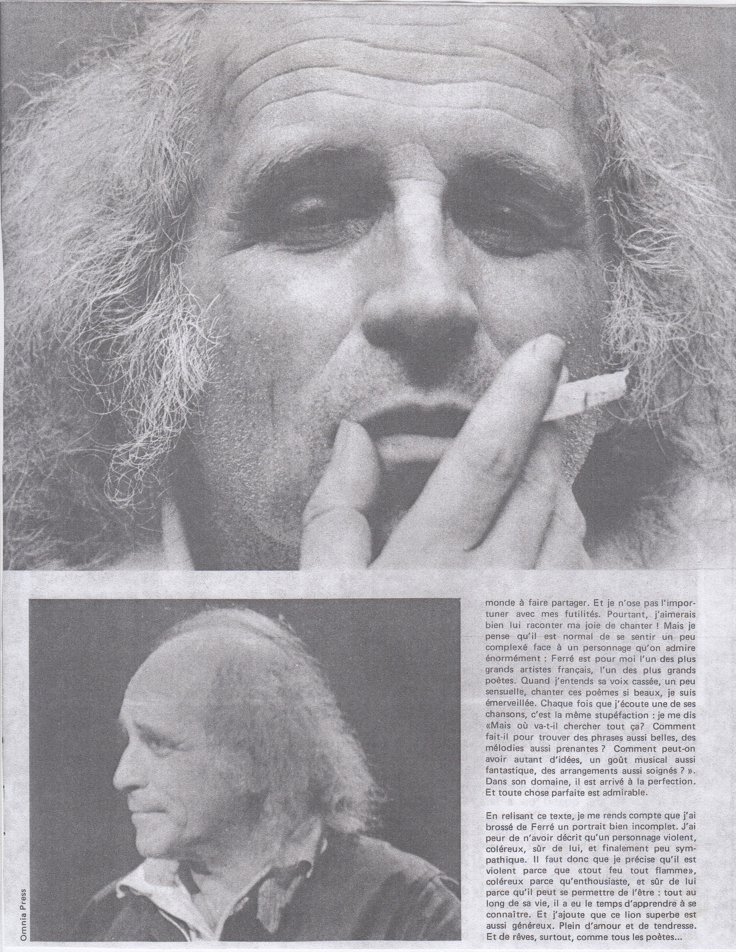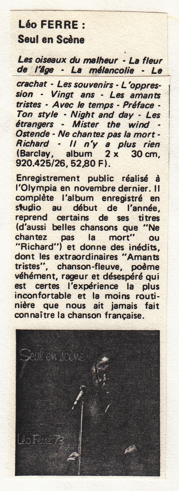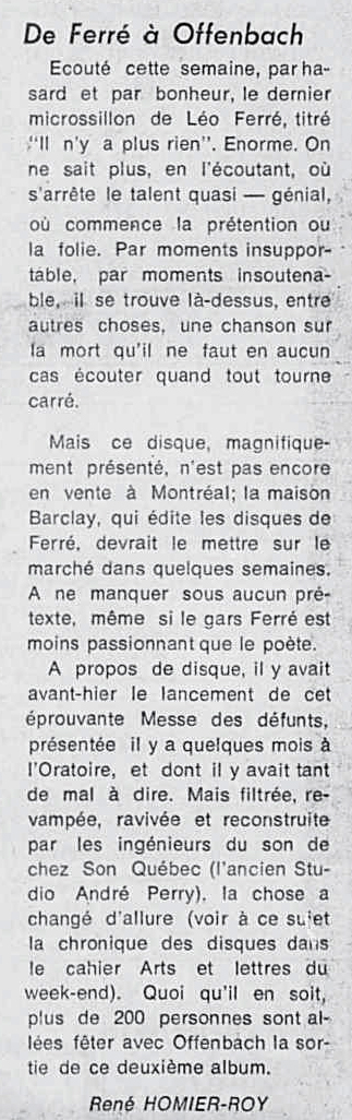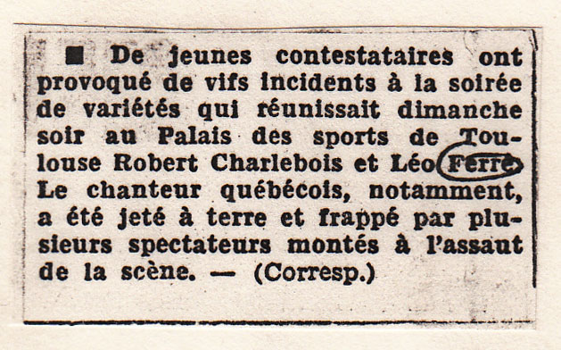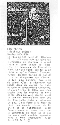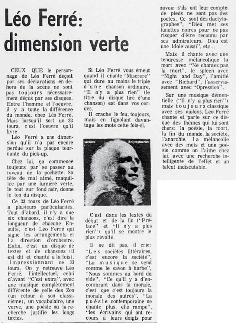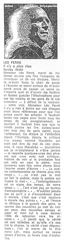 Source : extrait du livre Léo Ferré je parle pour dans dix siècles de Dominique Lacout et Alain Wodrascka p.81