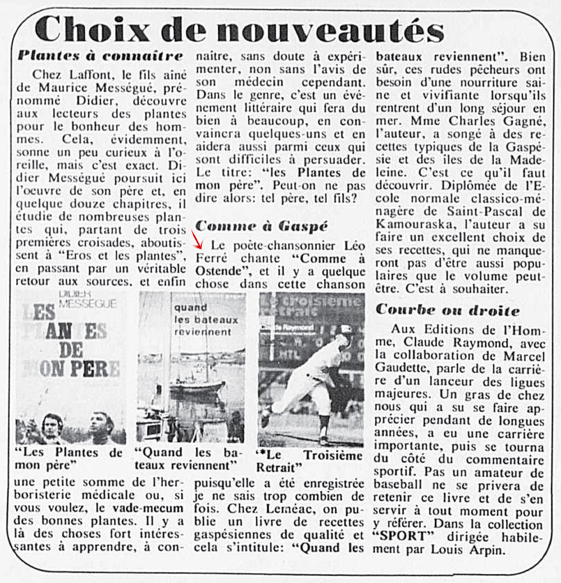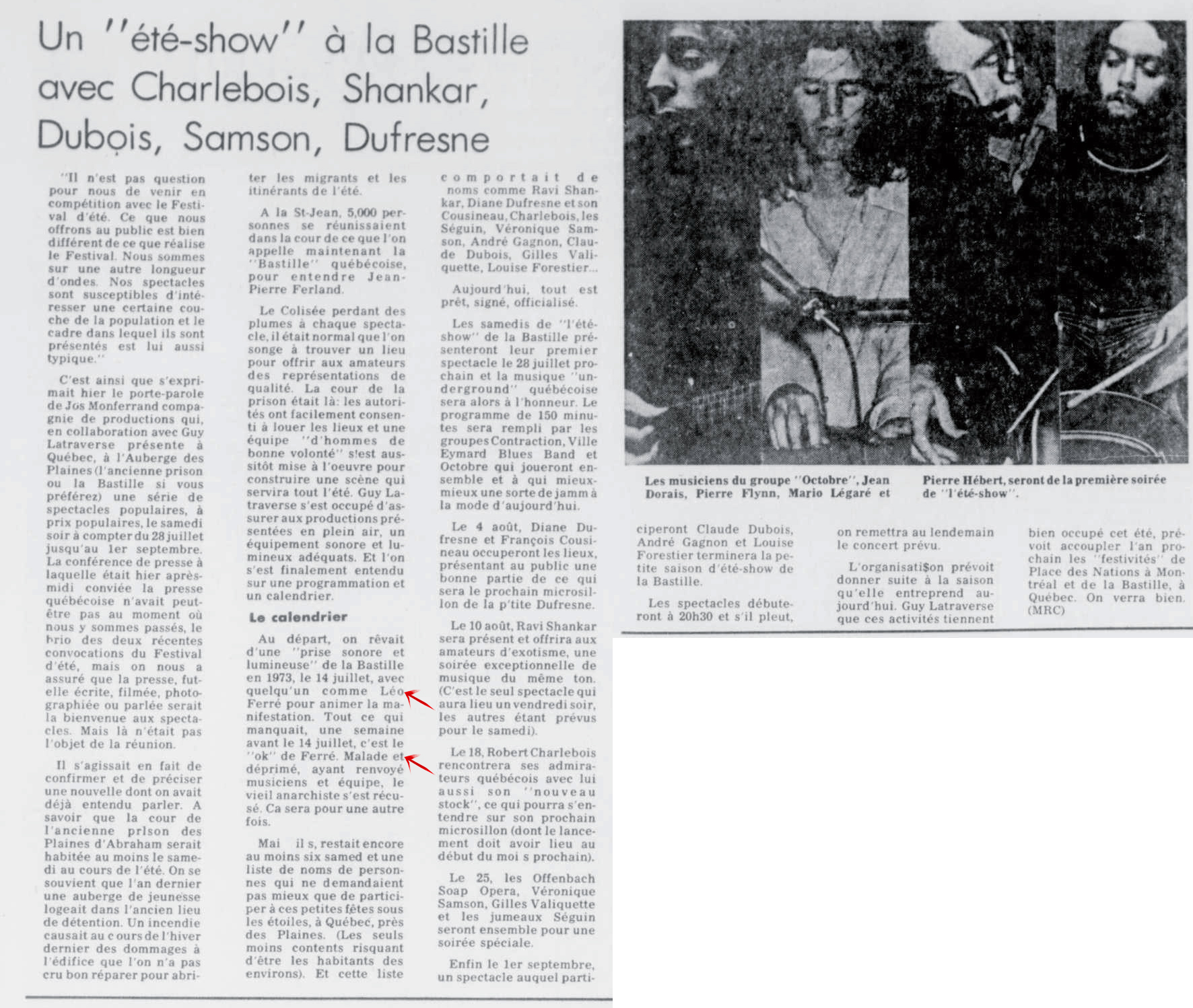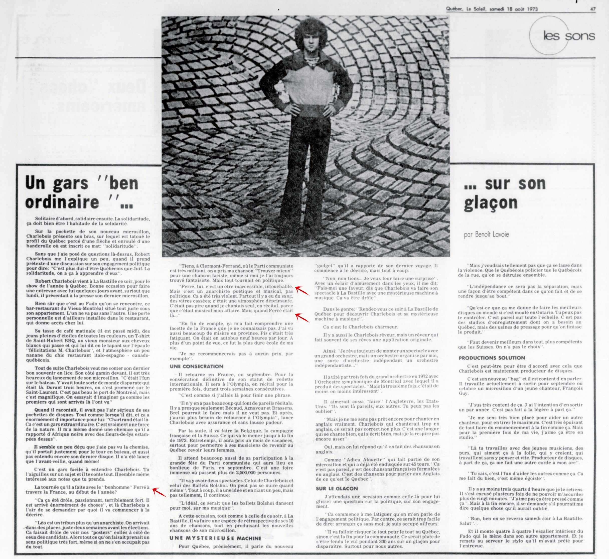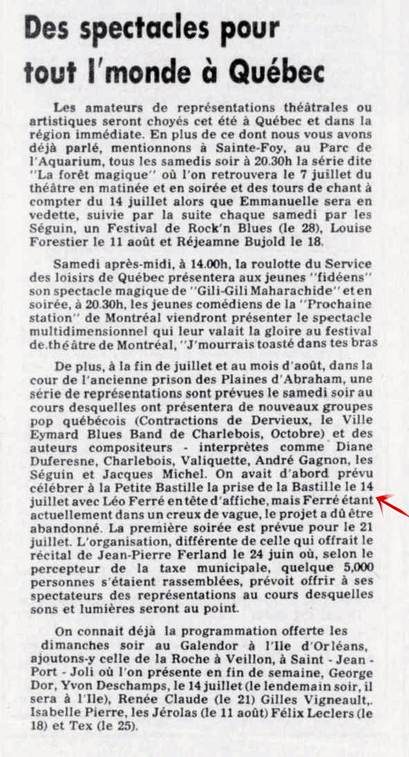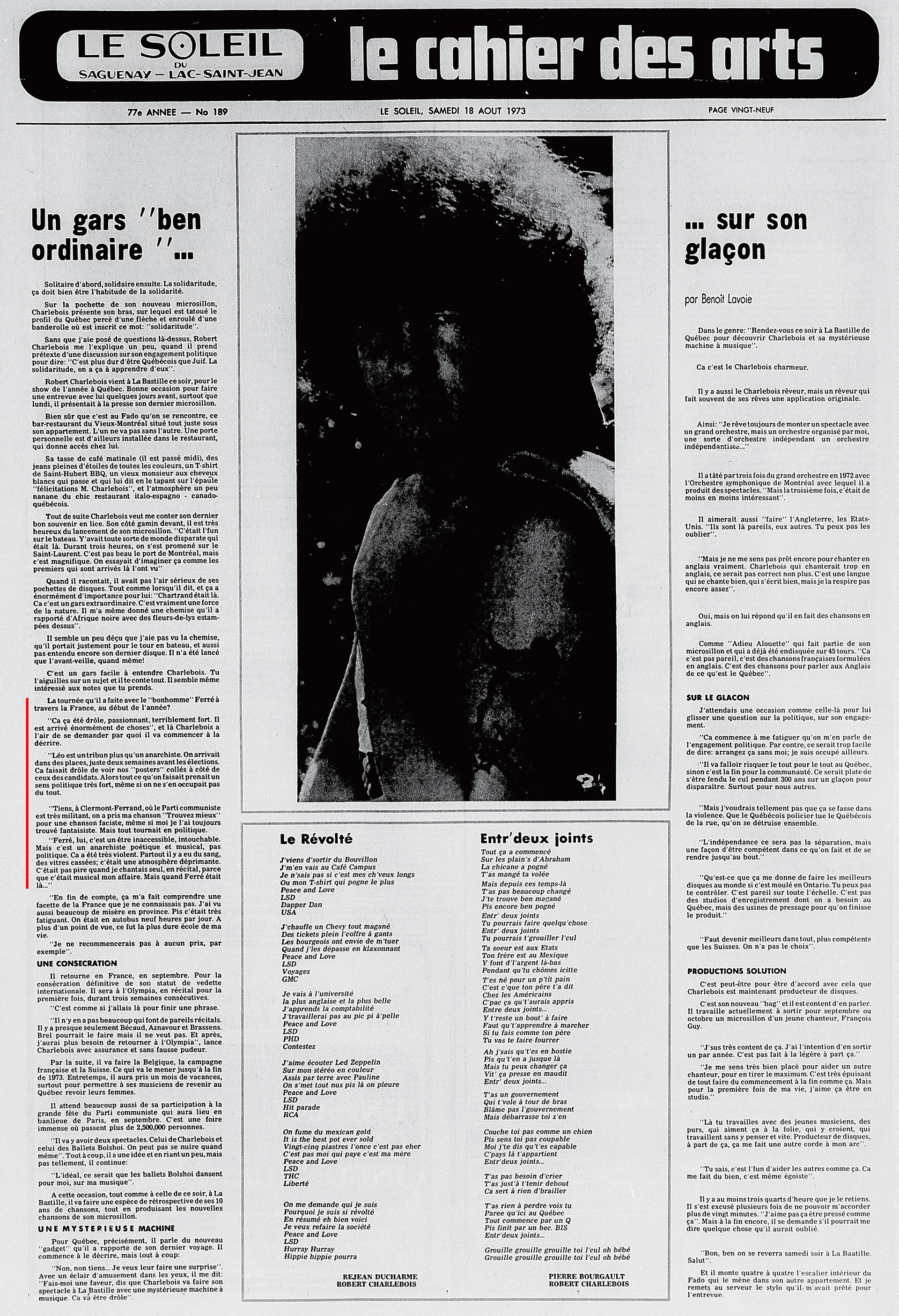Idem article "Le soleil du Saguenay-Lac-Saint-Jean, 1970-1973, samedi 18 août 1973", présentation différente et manque juste les deux textes centraux