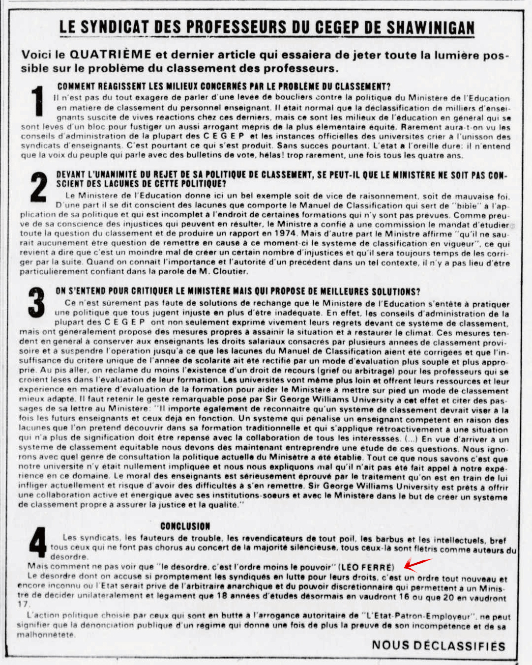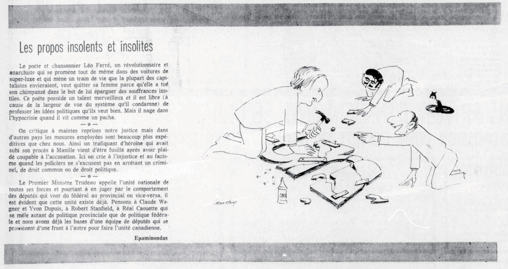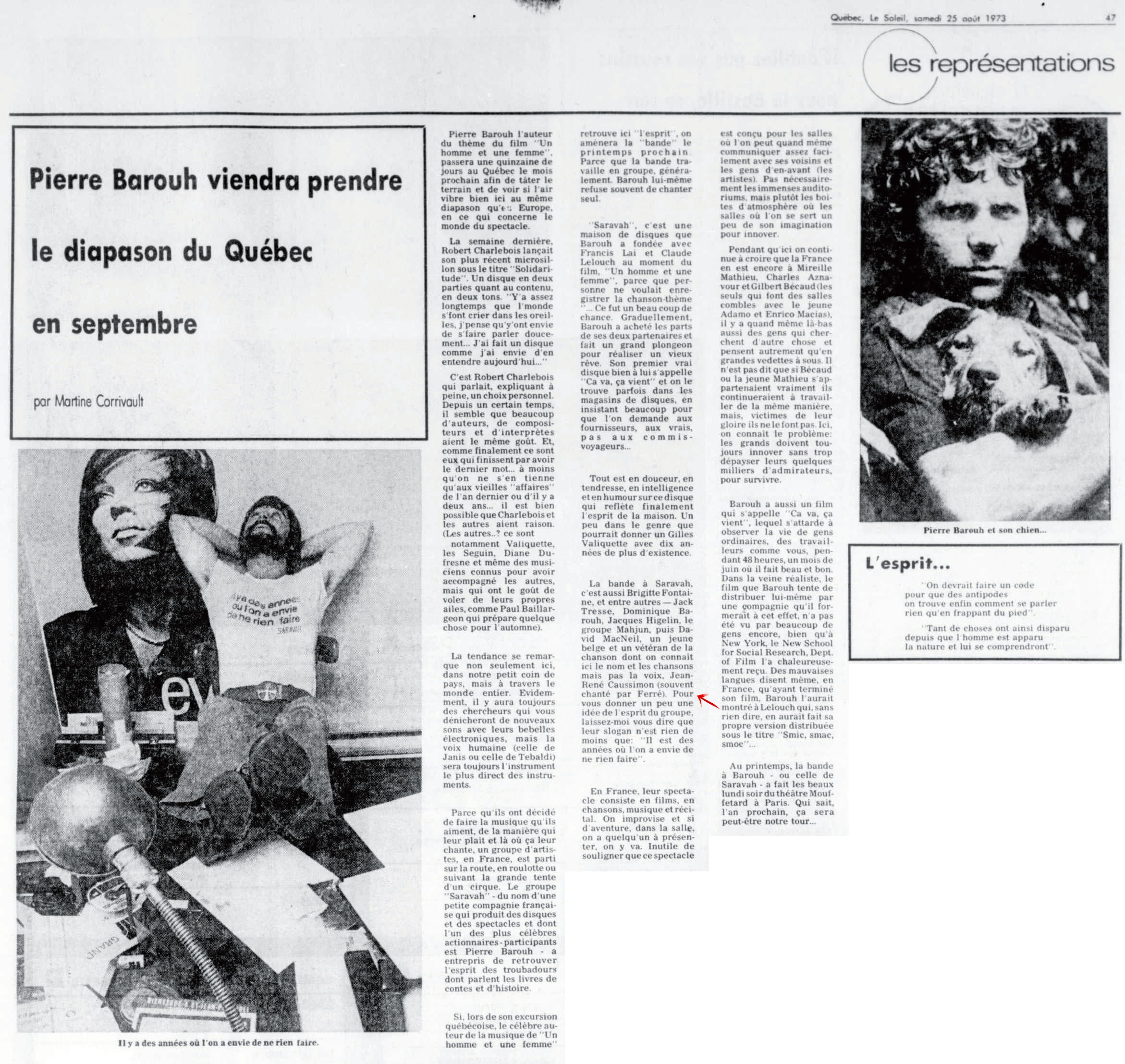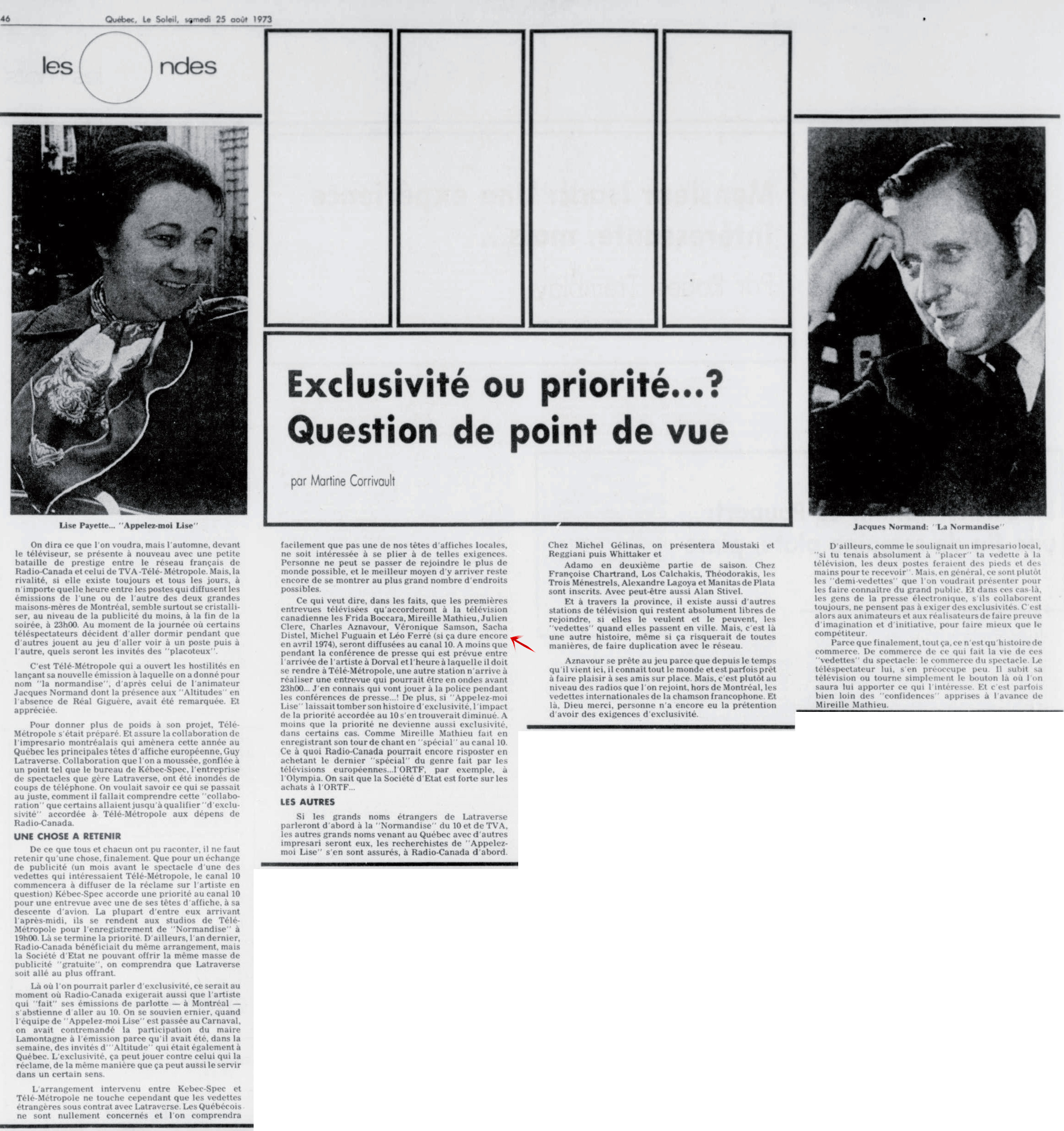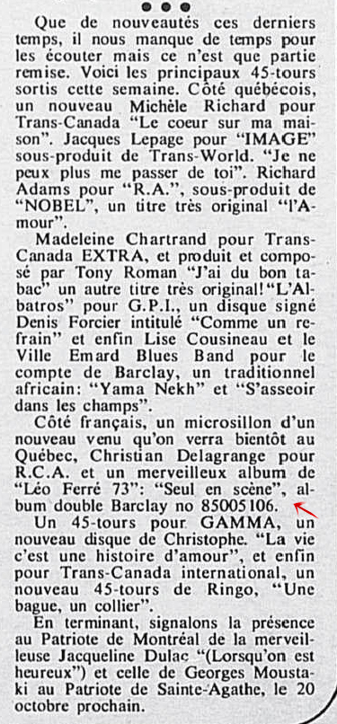 Idem article "Le soleil du Saguenay-Lac-Saint-Jean, 1970-1973, samedi 18 août 1973", présentation différente et manque juste les deux textes centraux