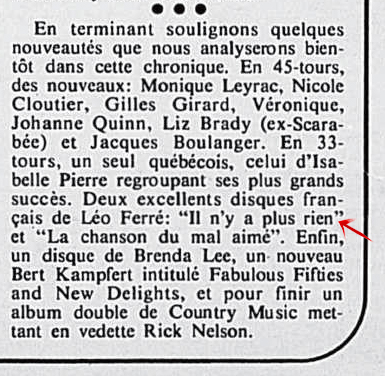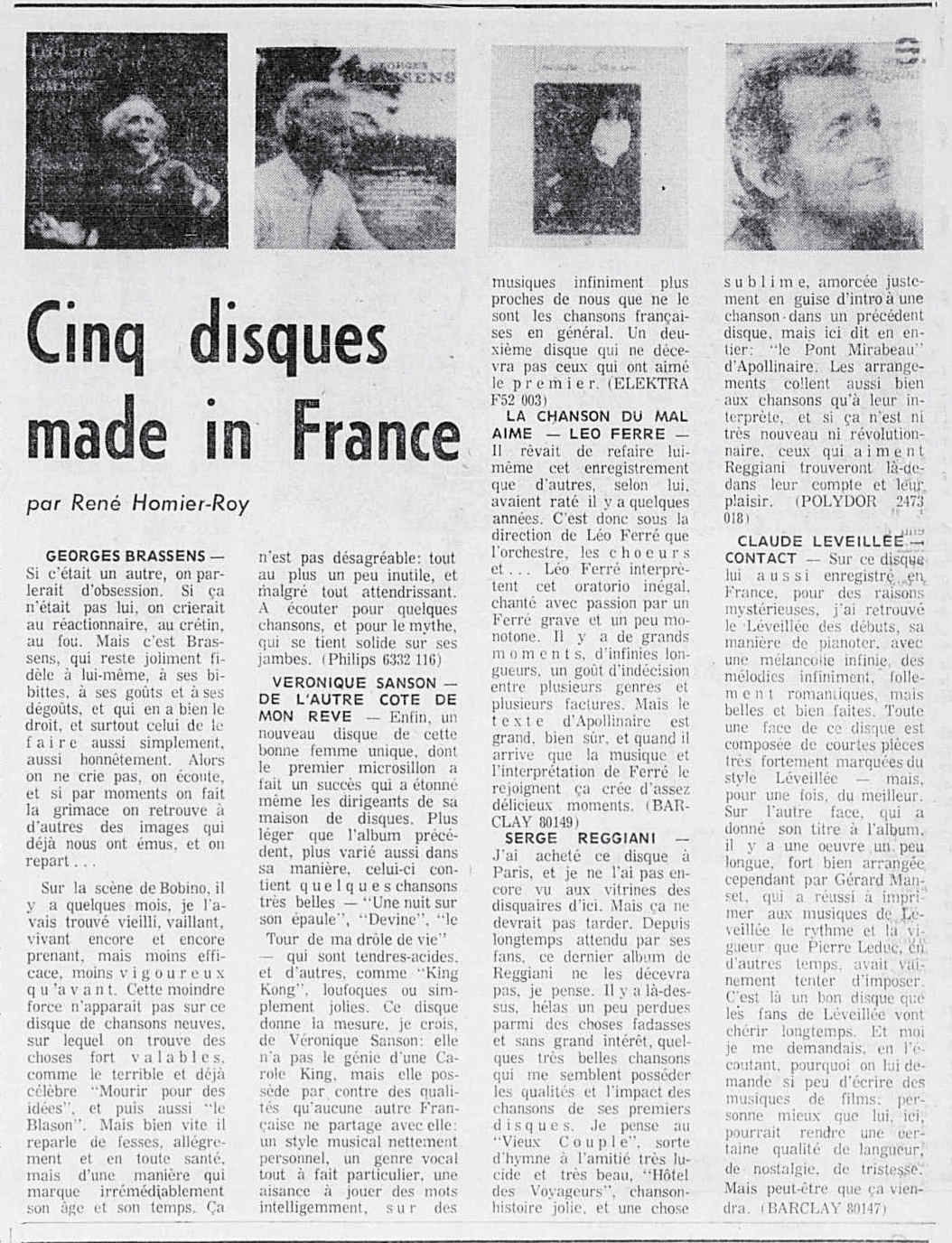 • Cinq disques made in France (La chanson du mal-aimé)