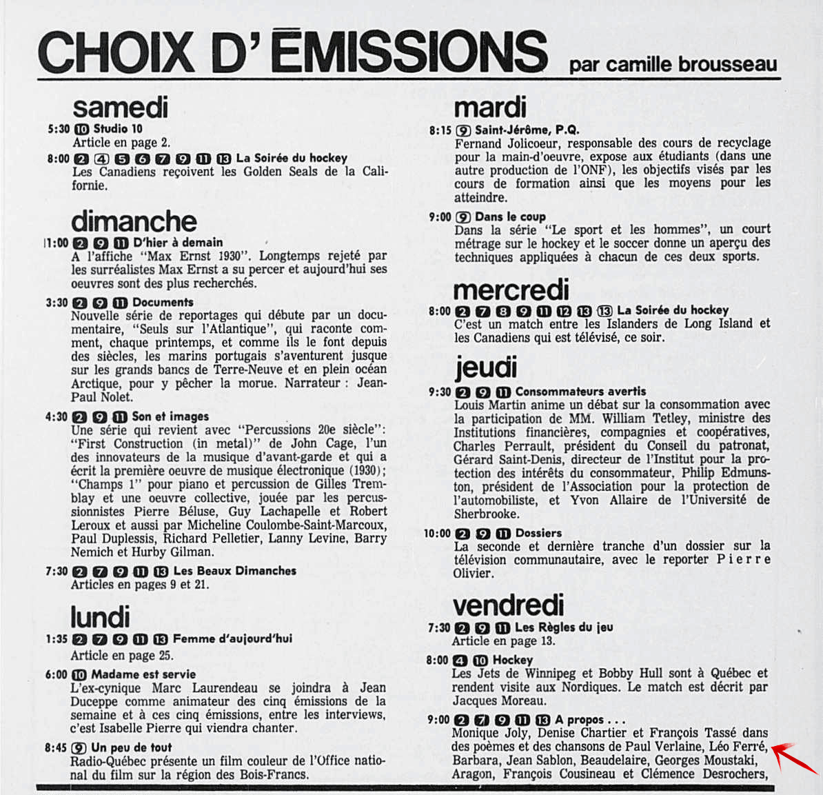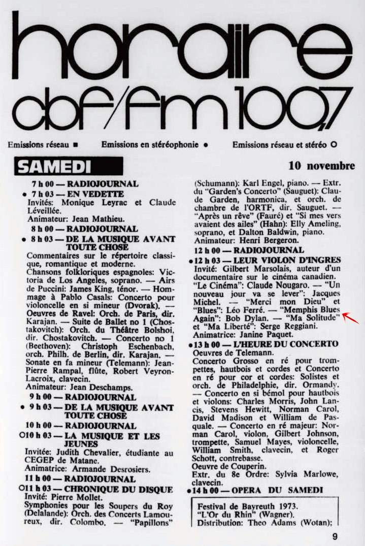 10.11 : Ici Radio-Canada, 1966-1985, 10 novembre 1973, RADIO