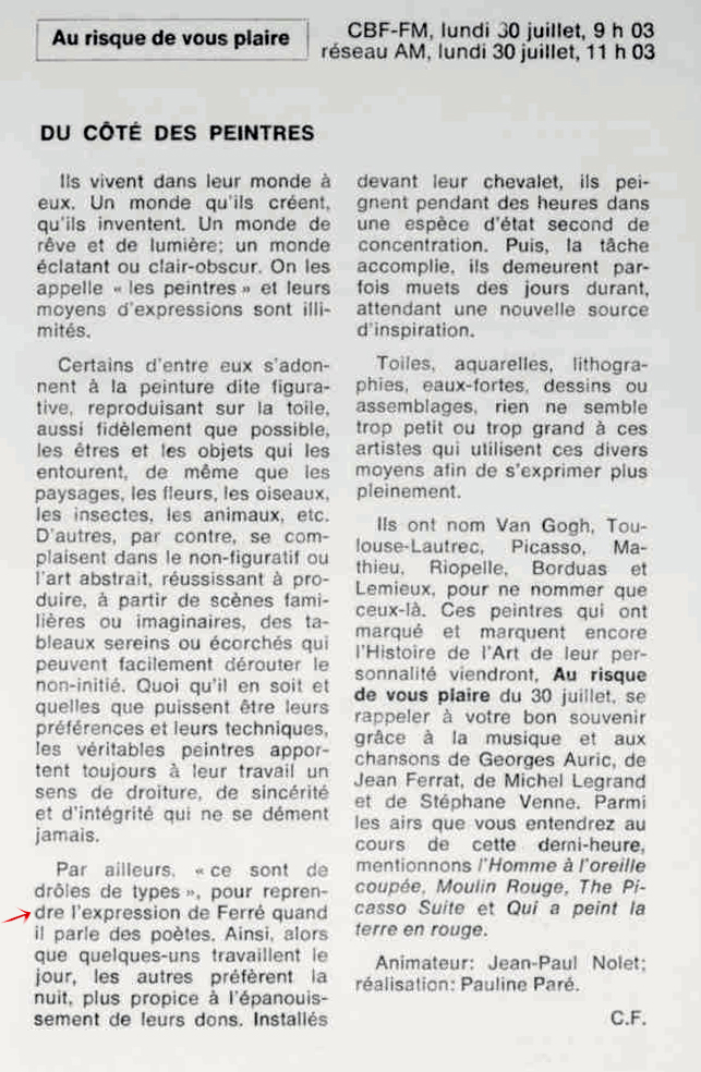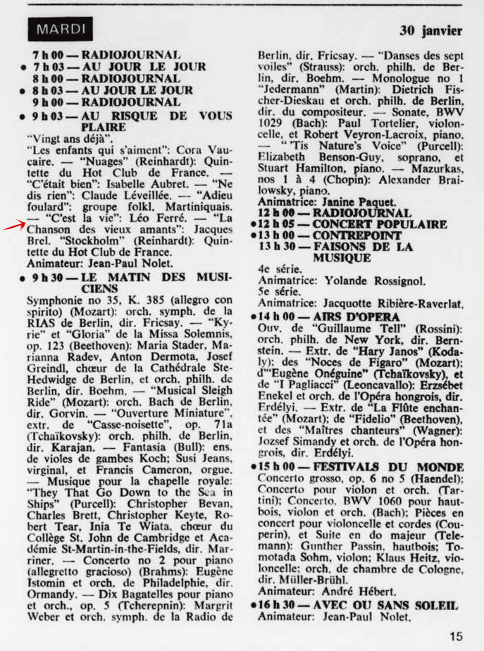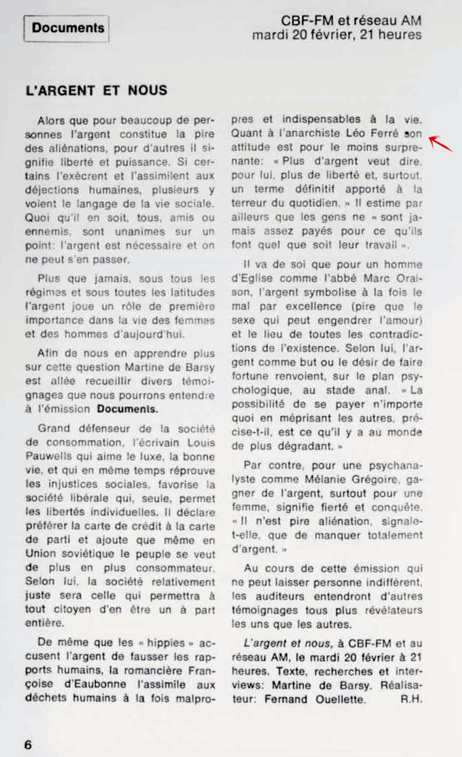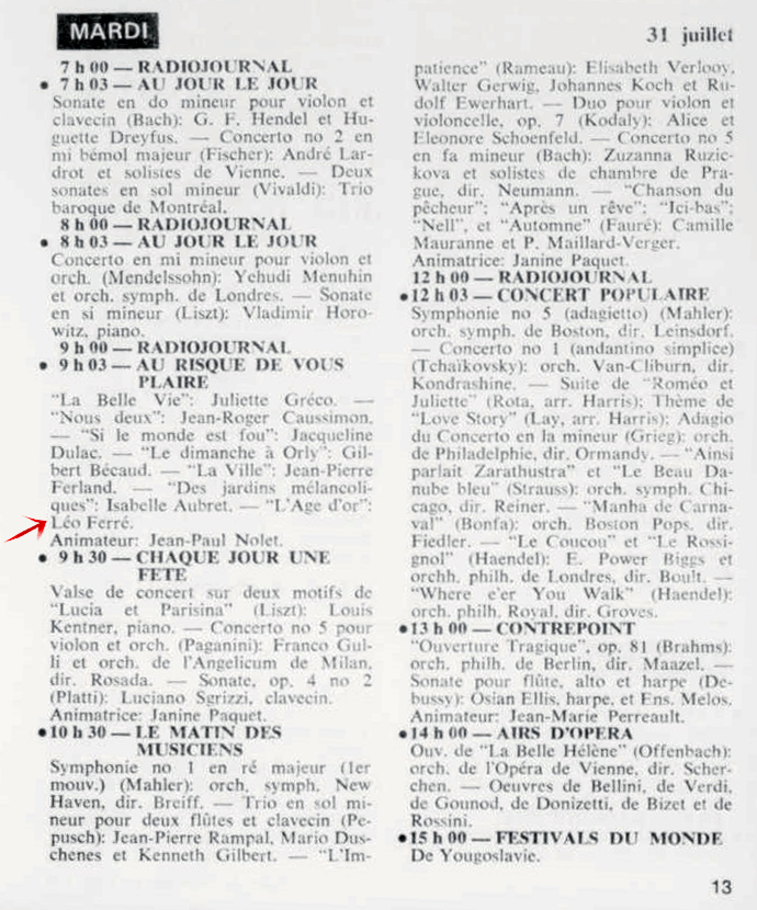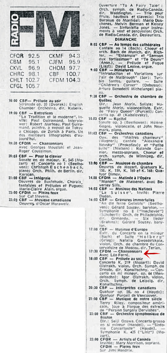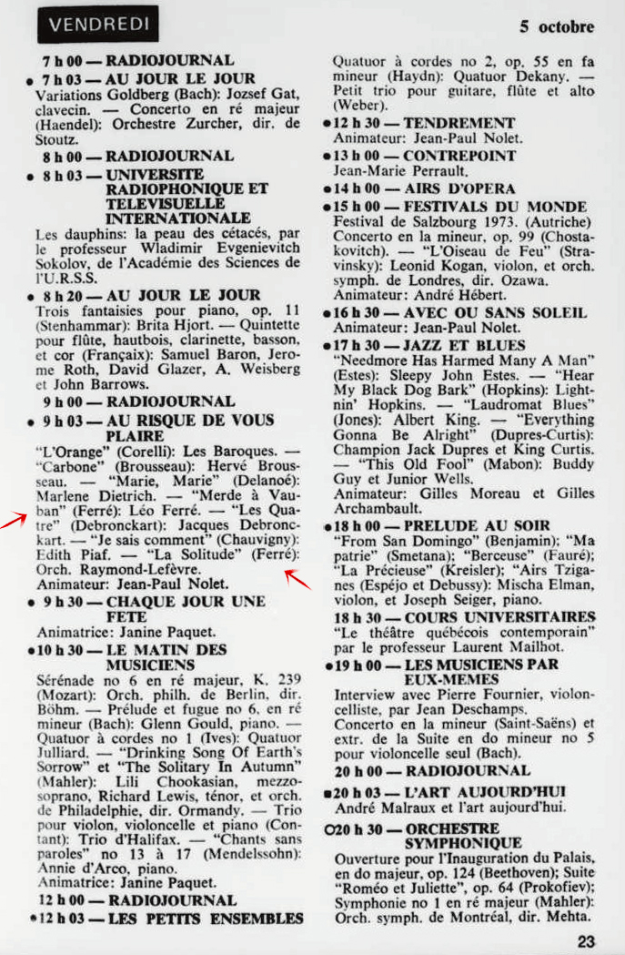 29.09 : Ici Radio-Canada, 1966-1985, 29 septembre 1973, RADIO