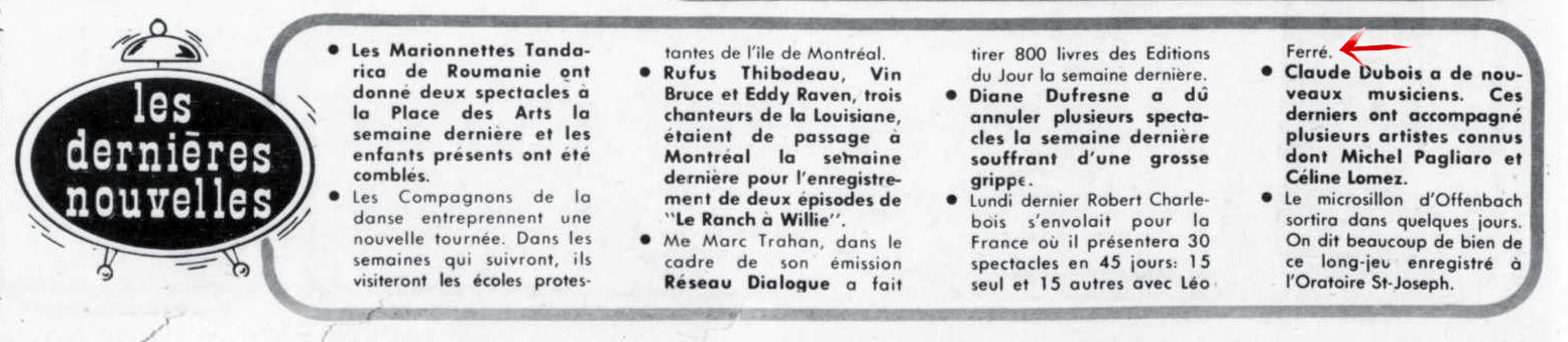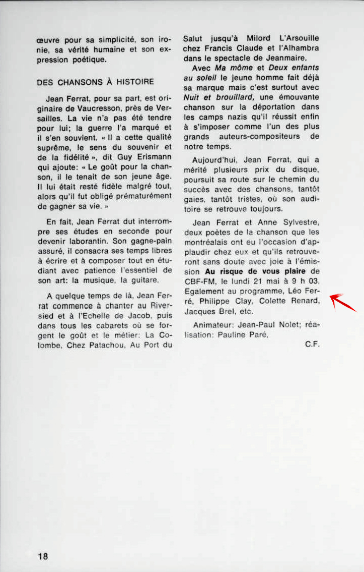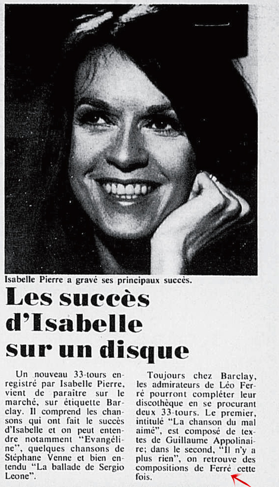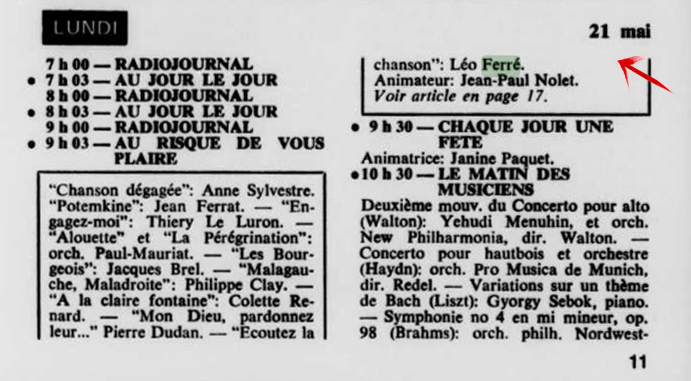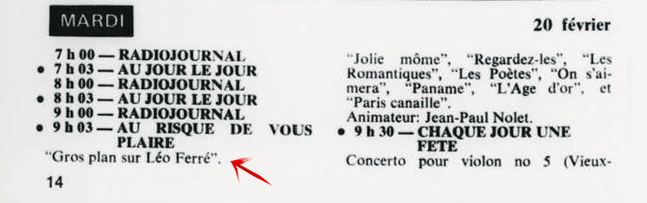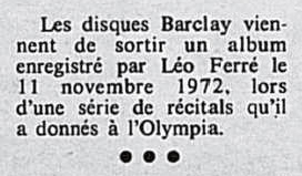 Source : Date prise dans le livre Léo Ferré je parle pour dans dix siècles p.103.