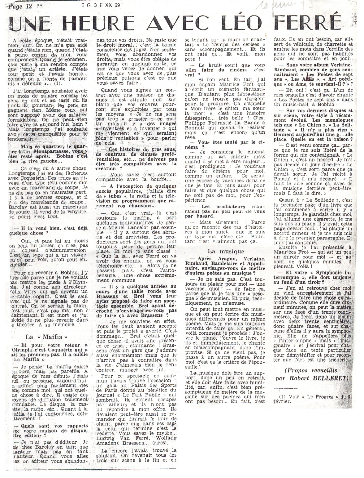 Propos recueillis par Robert Belleret