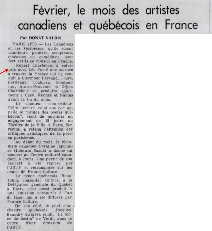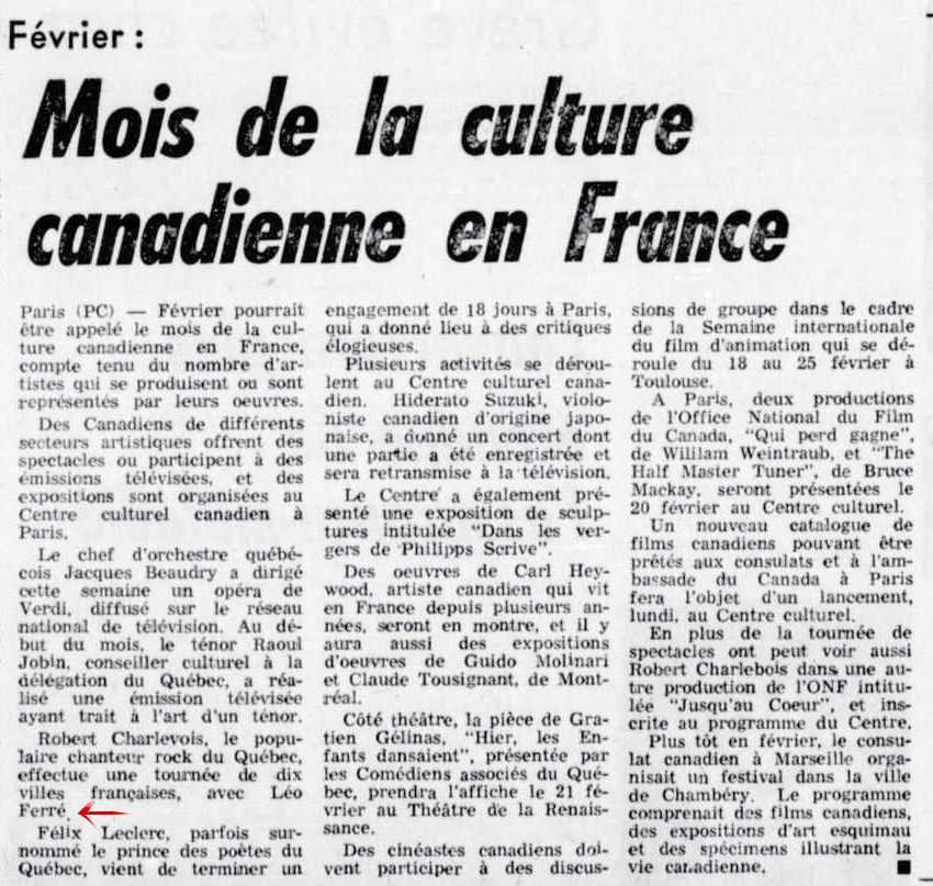 • Février, le mois des artistes canadiens et québécois en France