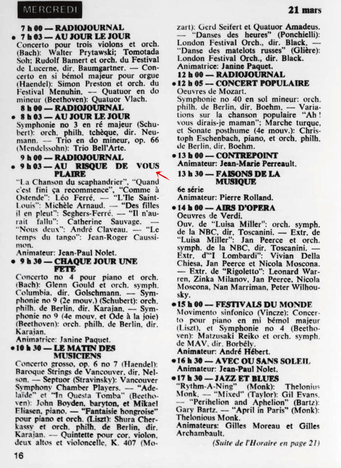 03.03 : Ici Radio-Canada, 1966-1985, 3 mars 1973, RADIO