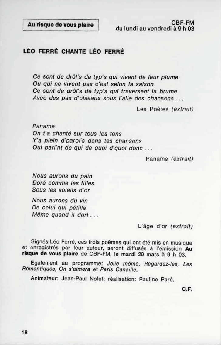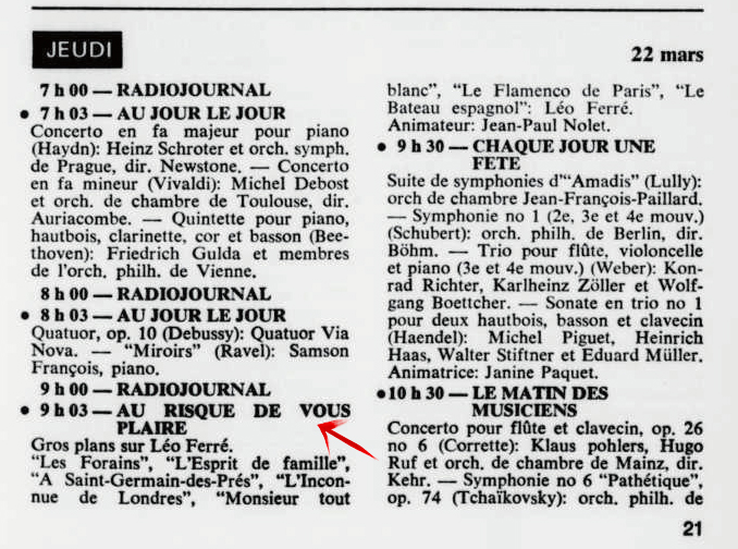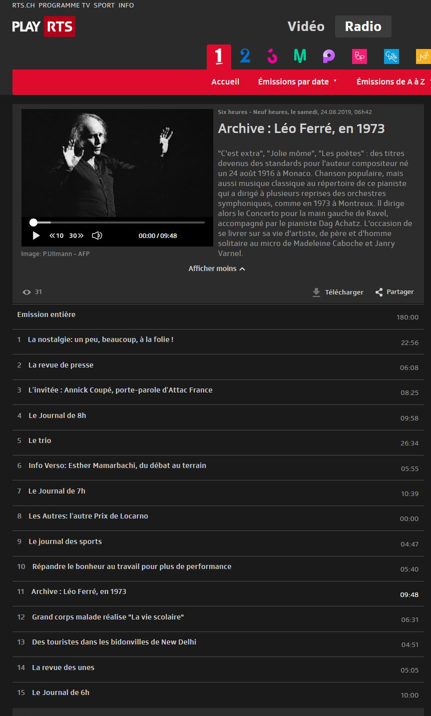 • Au risque de vous plaire "Gros plan sur Léo Ferré" - Radio