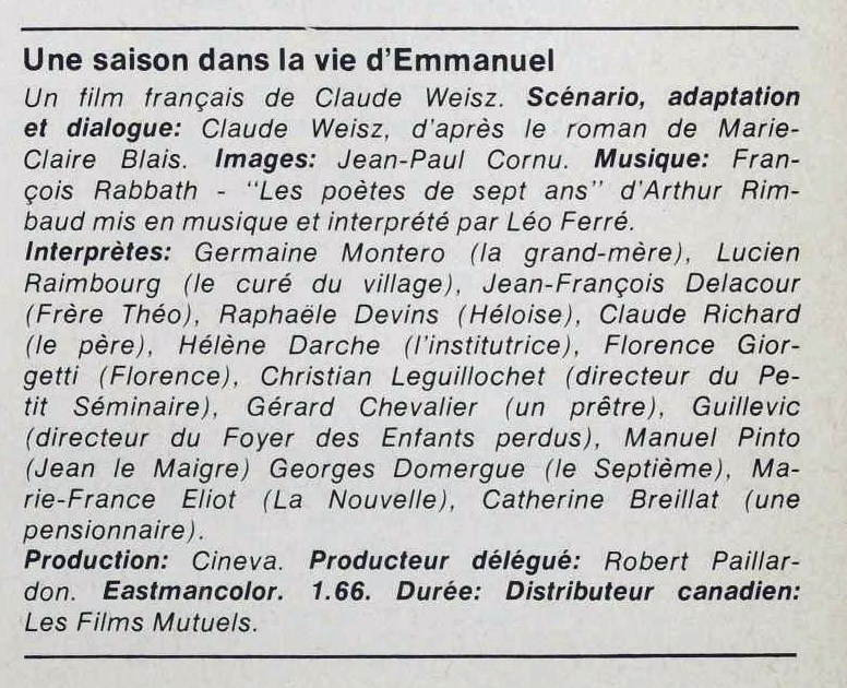 • Une saison dans la vie d'Emmanuel