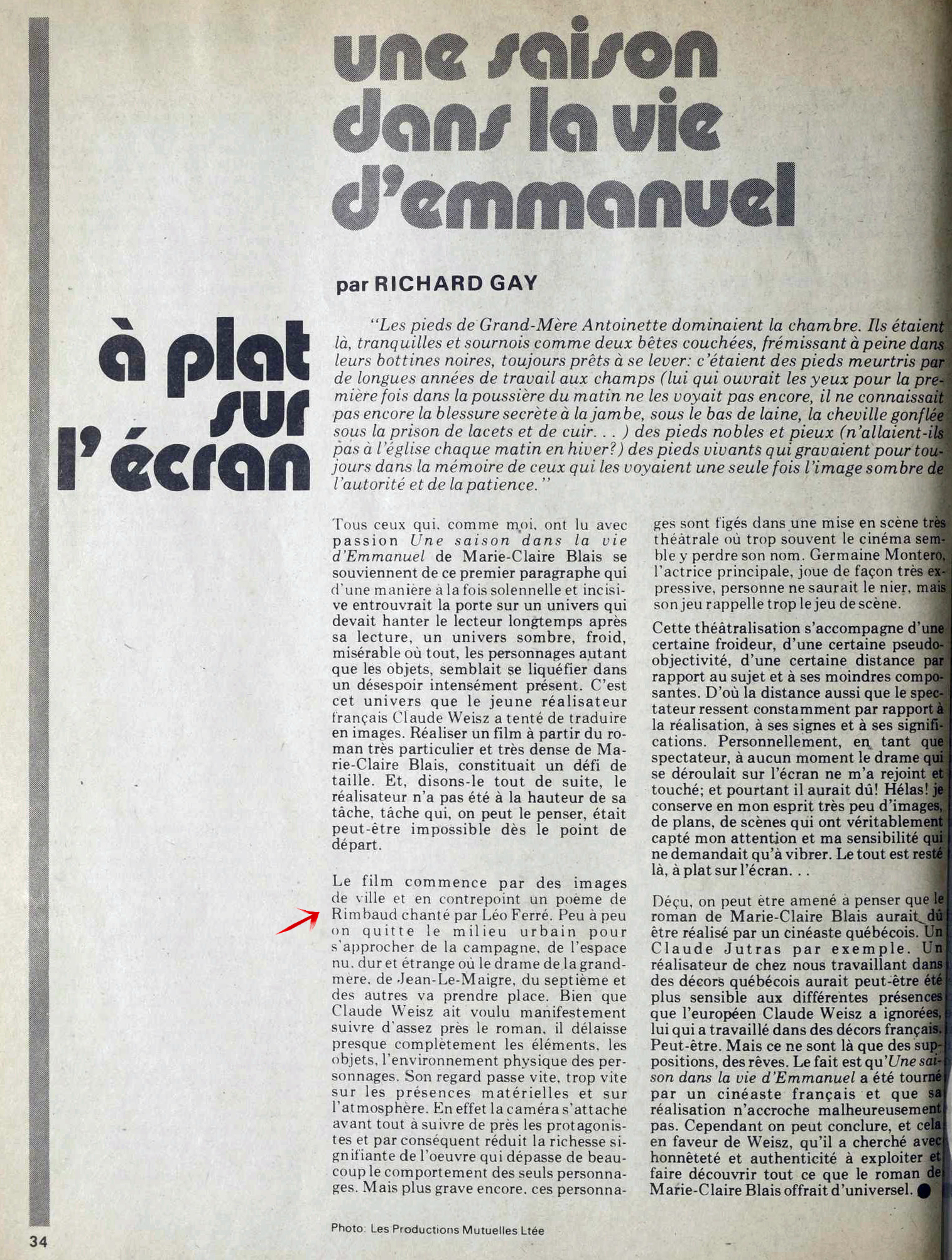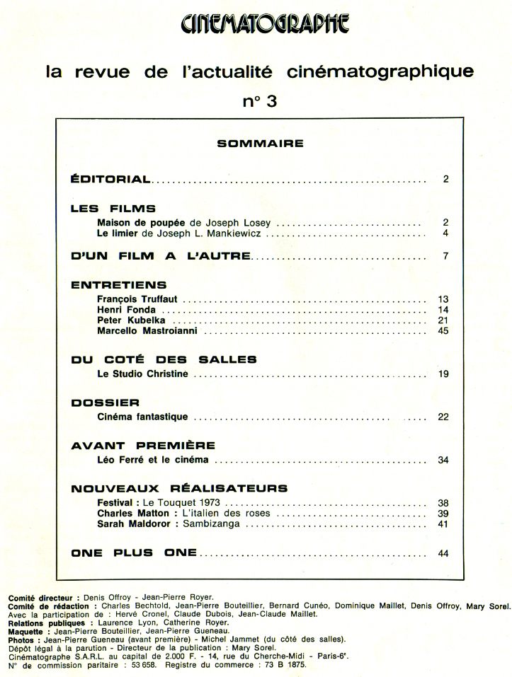Mars Avril : Cinéma Québec, 1971-1978, 1973, Mars - Avril