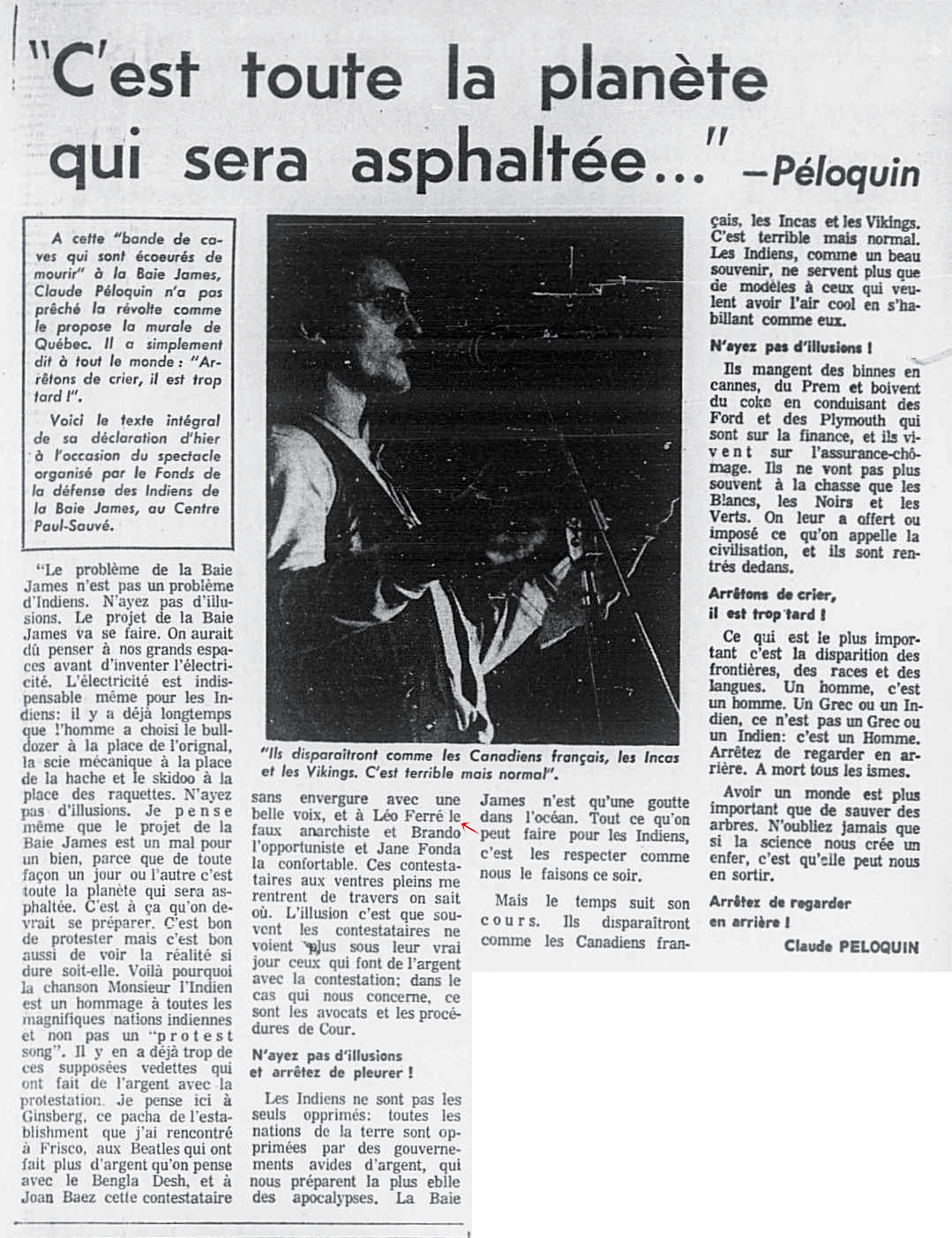 • "C'est toute la planète qui sera asphaltée..." -Péloquin