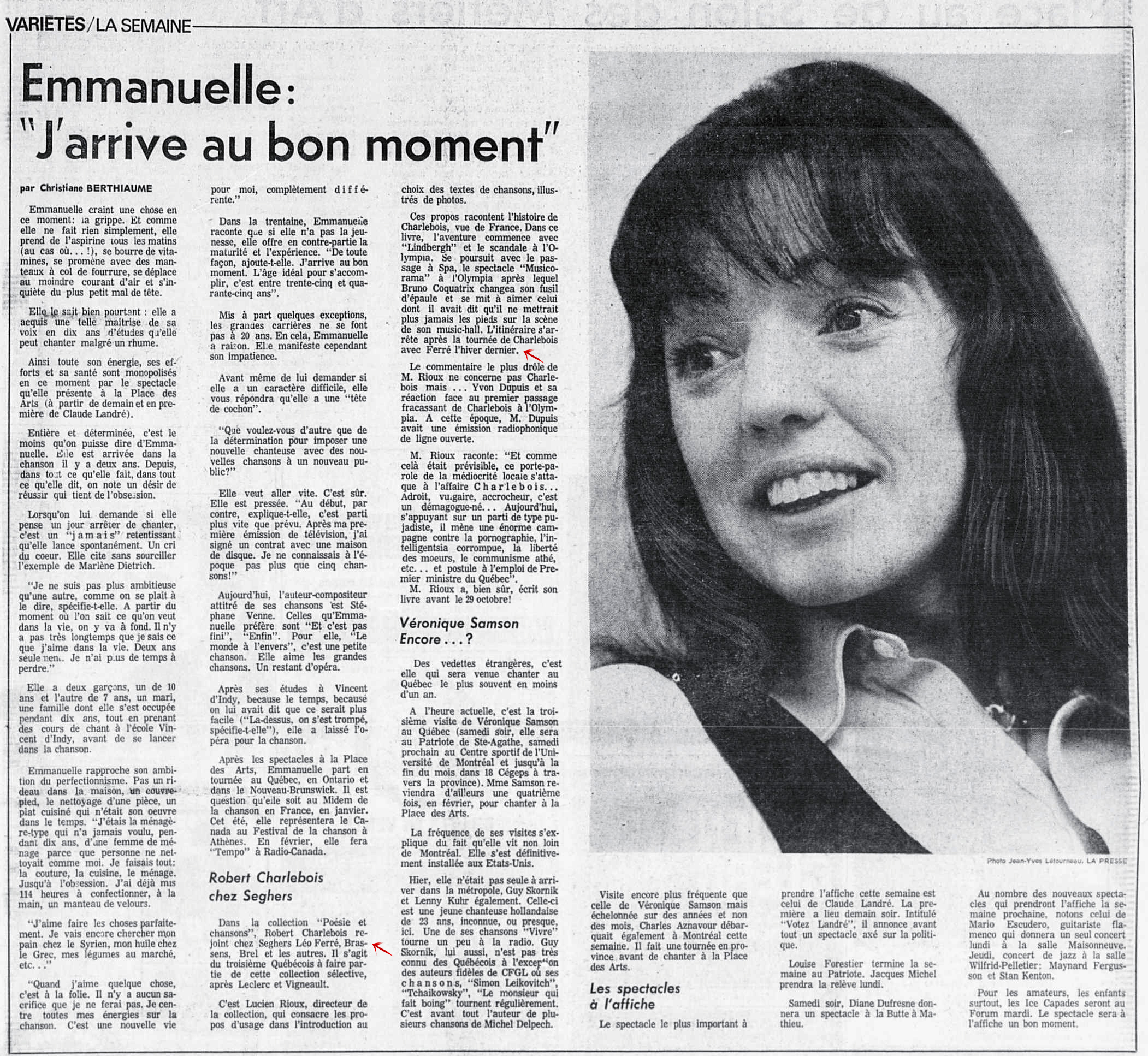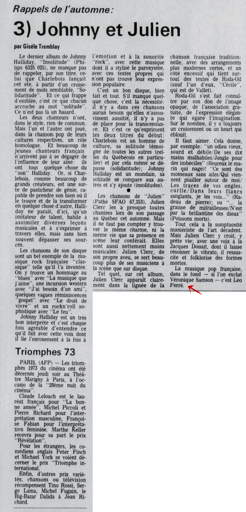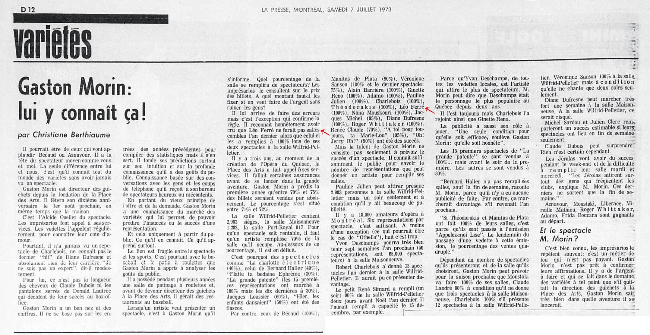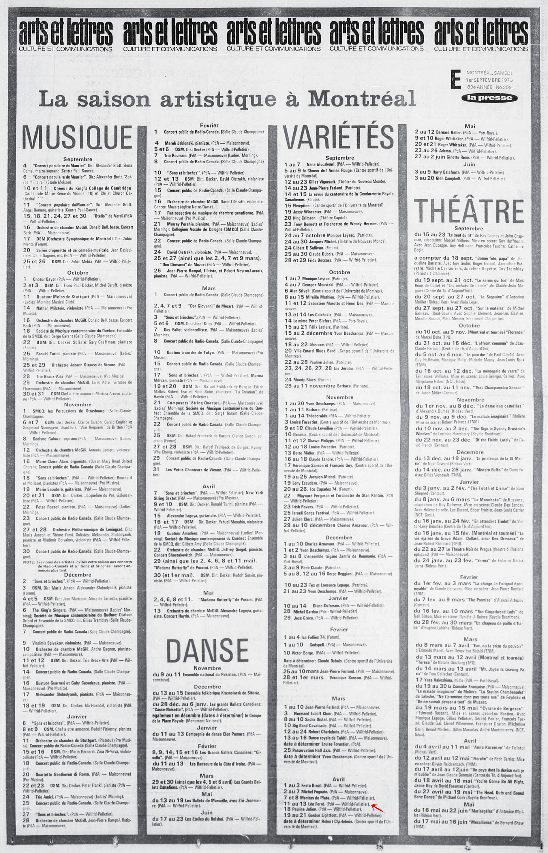 15.11 : La presse, 1884- (Montréal), 15 novembre 1973, F. Arts et spectacles