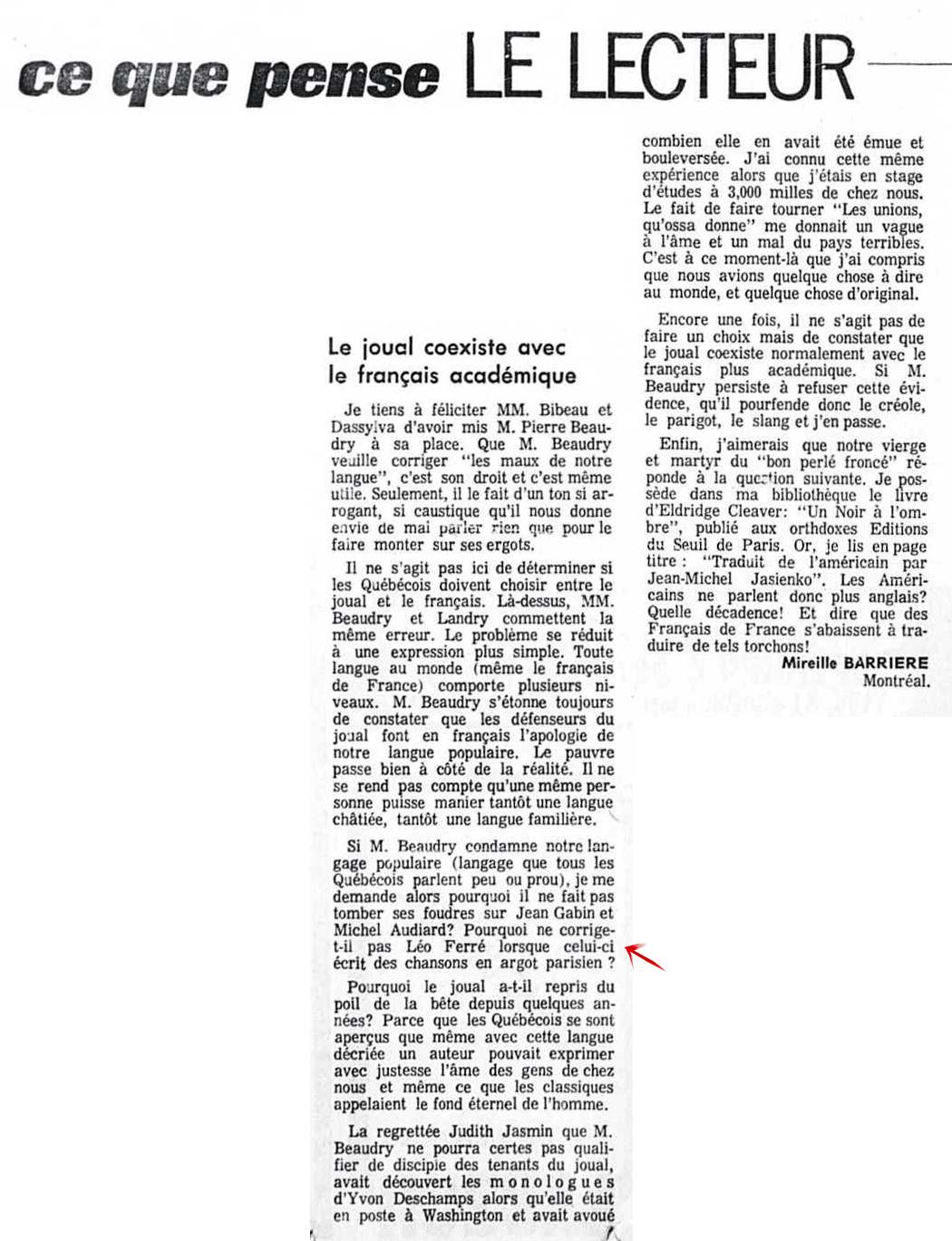 L'opinion de René Berthiaume