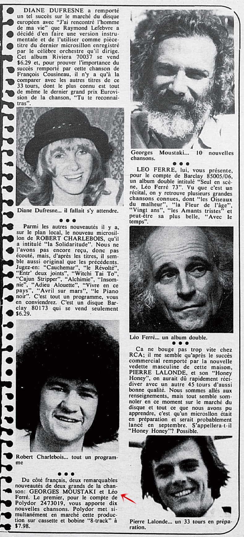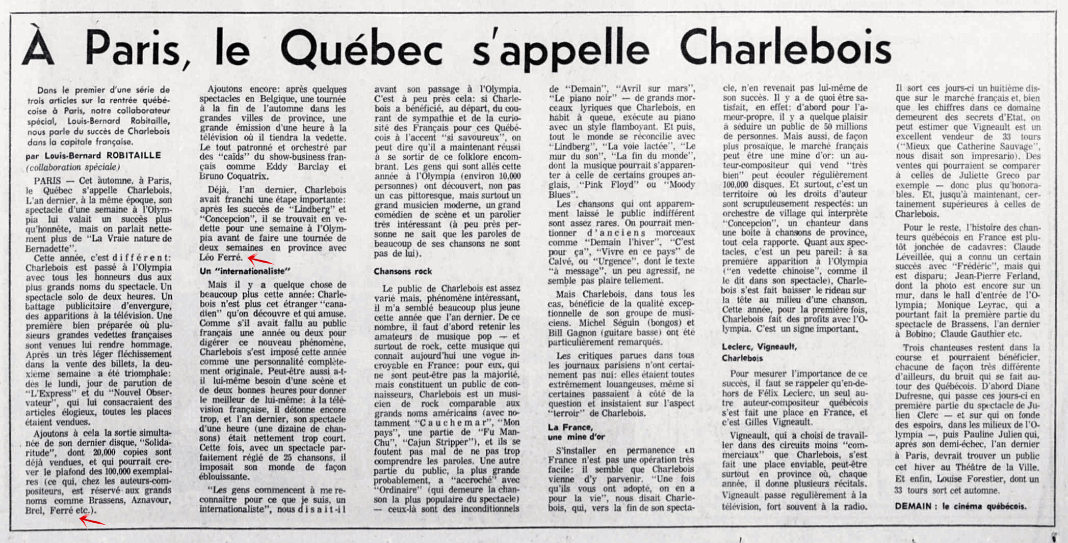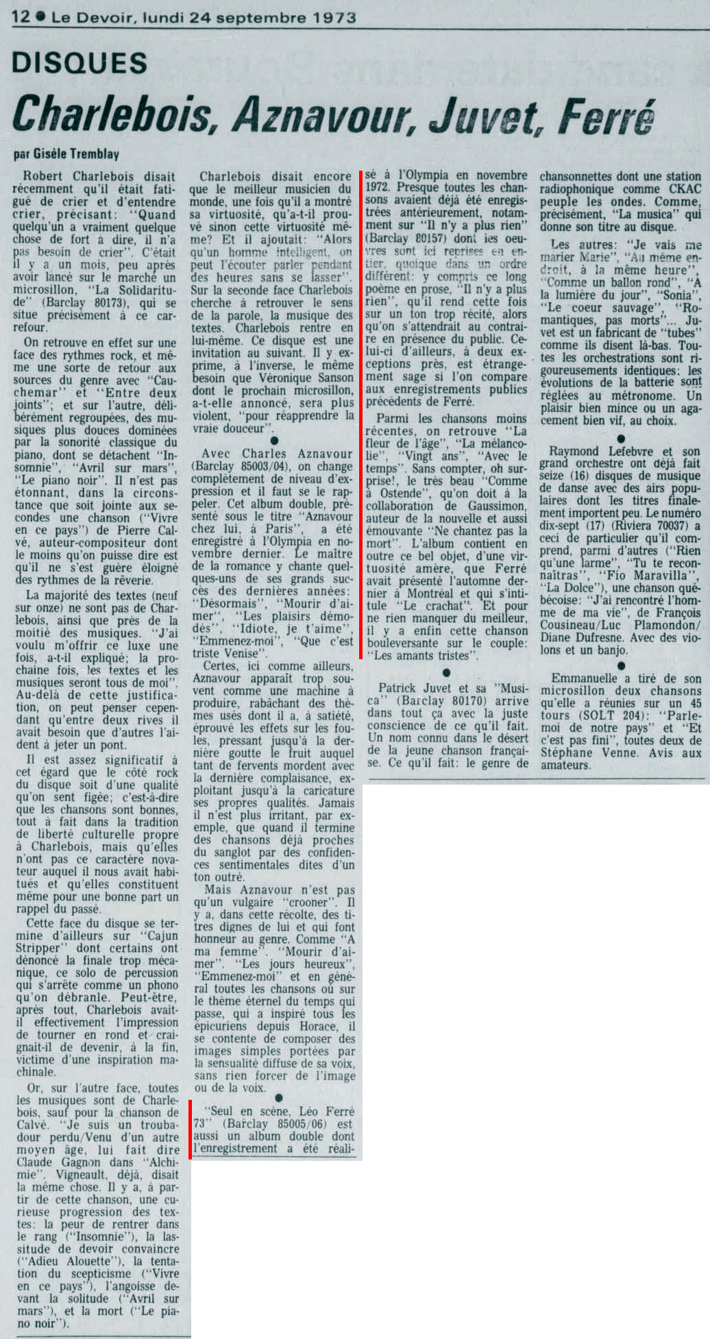 • Charlebois, Aznavour, Juvet, Ferré