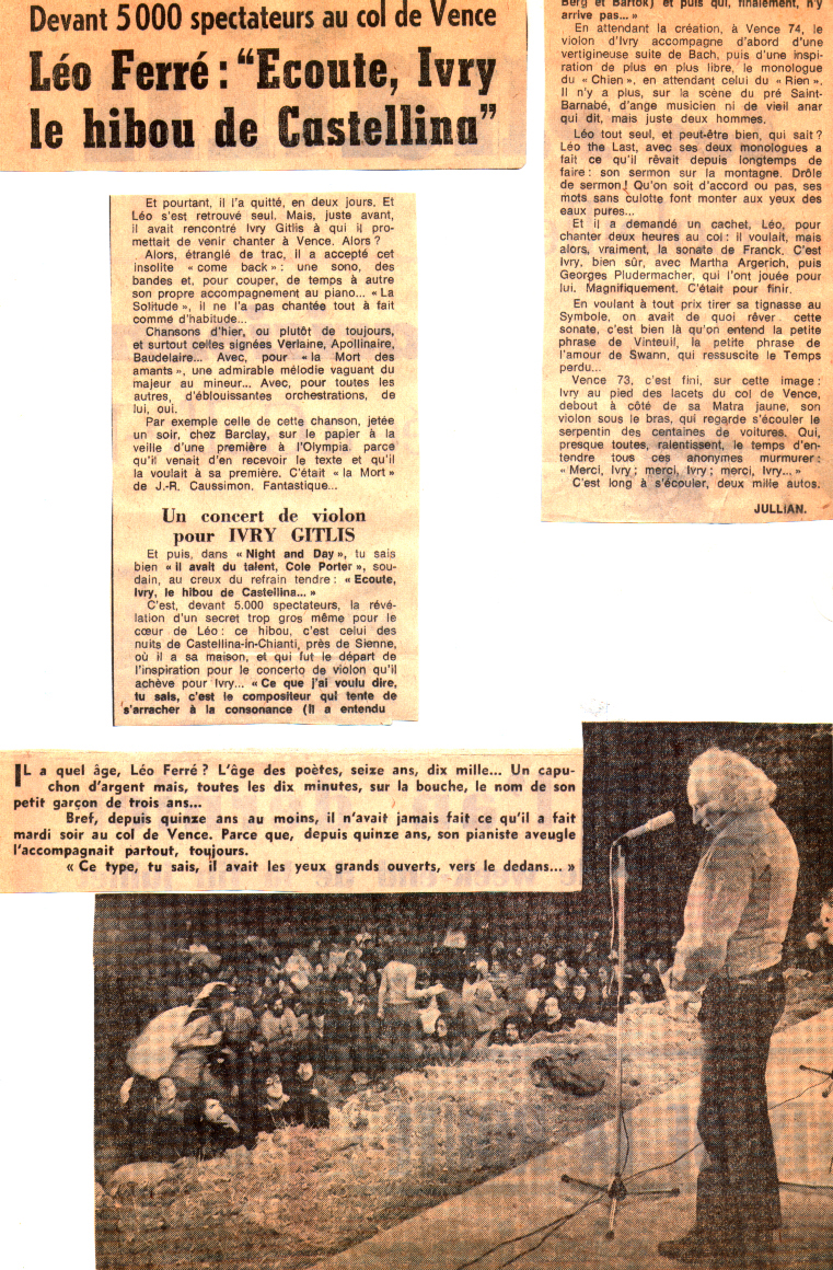 20.08 : Léo Ferré participe au Festival de musique de Vence crée par Ivry Gitlis, il y rencontre le pianiste Dag Achatz.