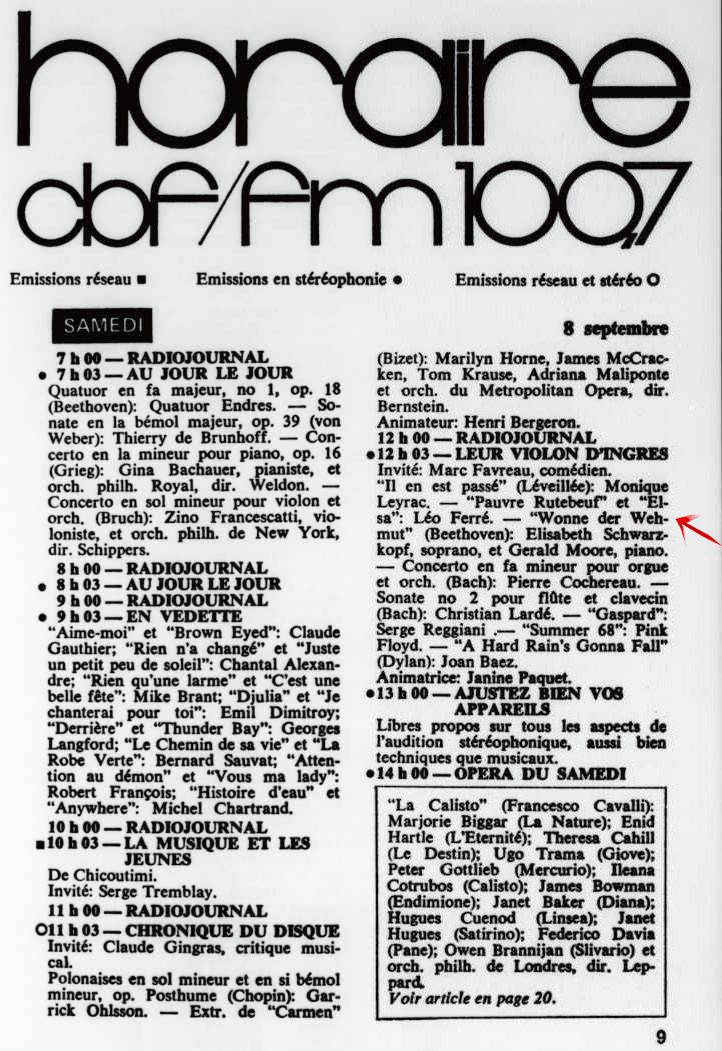 08.09 : Ici Radio-Canada, 1966-1985, 8 septembre 1973, RADIO