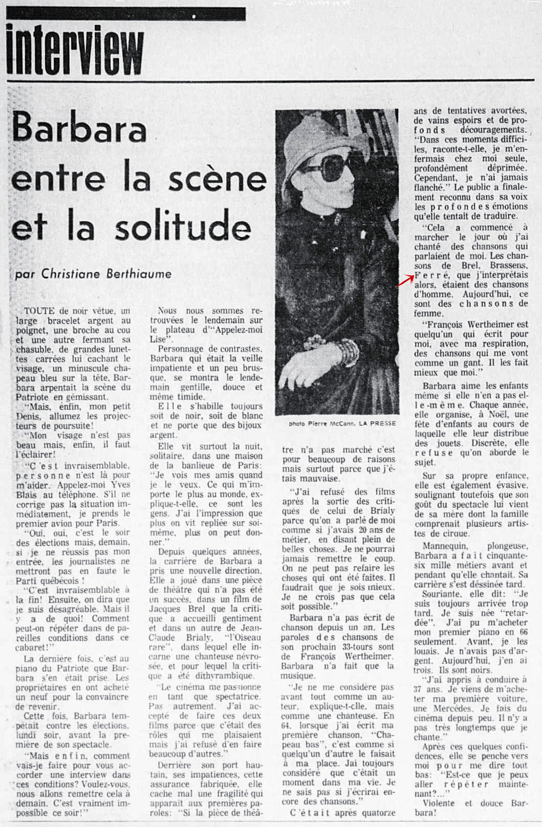 Interview, par Christiane Berthiaume