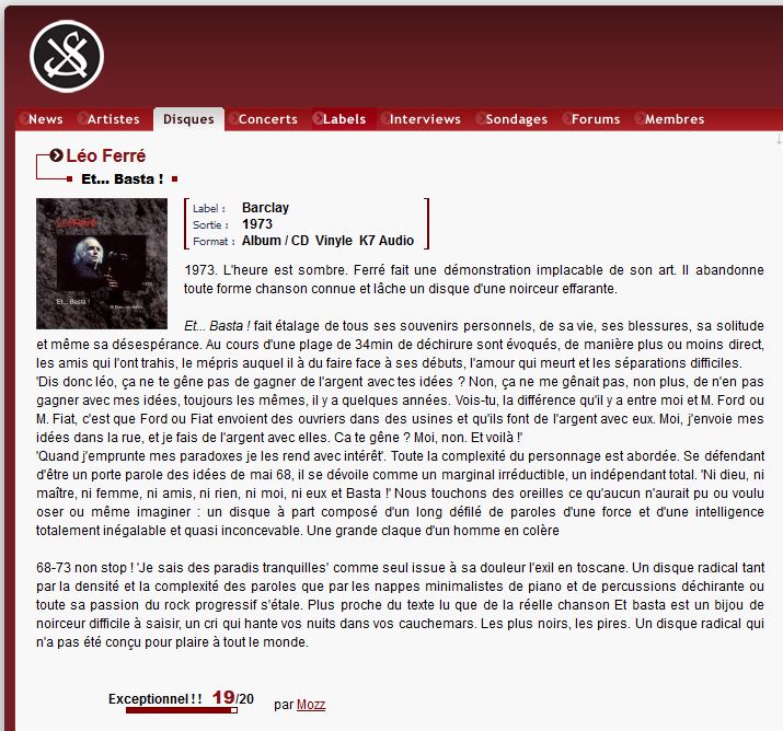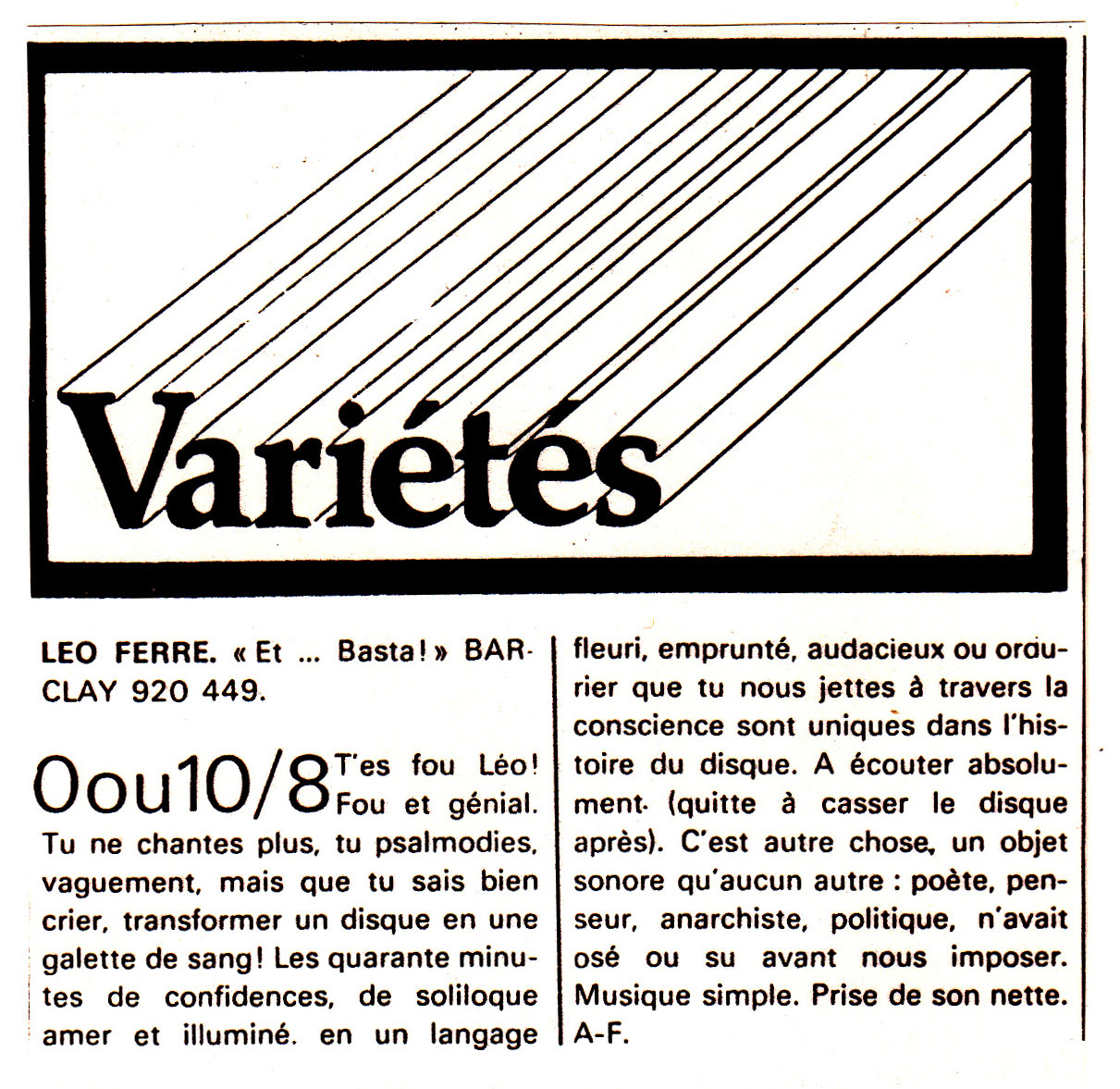 • Léo Ferré. "Et... Basta !" - 0 ou 10/8