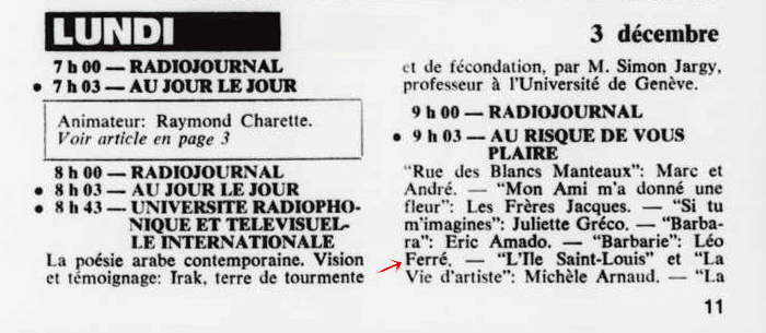 01.12 : Ici Radio-Canada, 1966-1985, 1 décembre 1973, RADIO