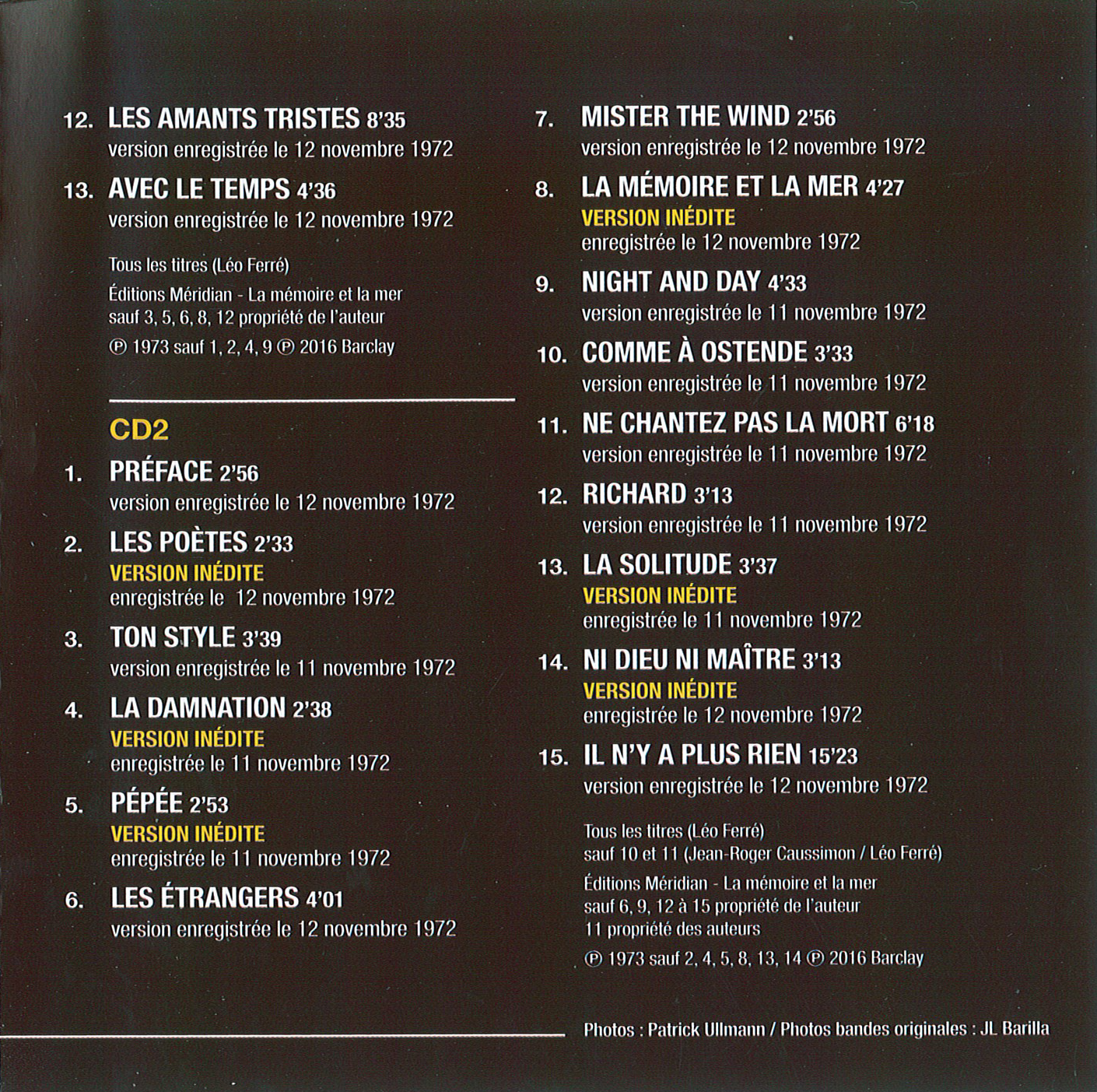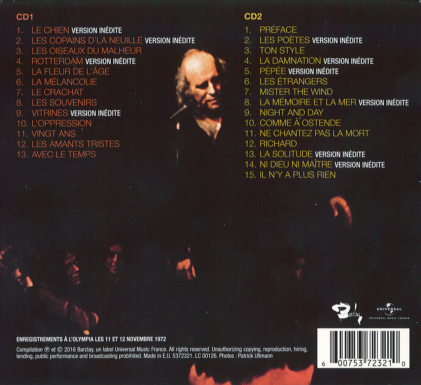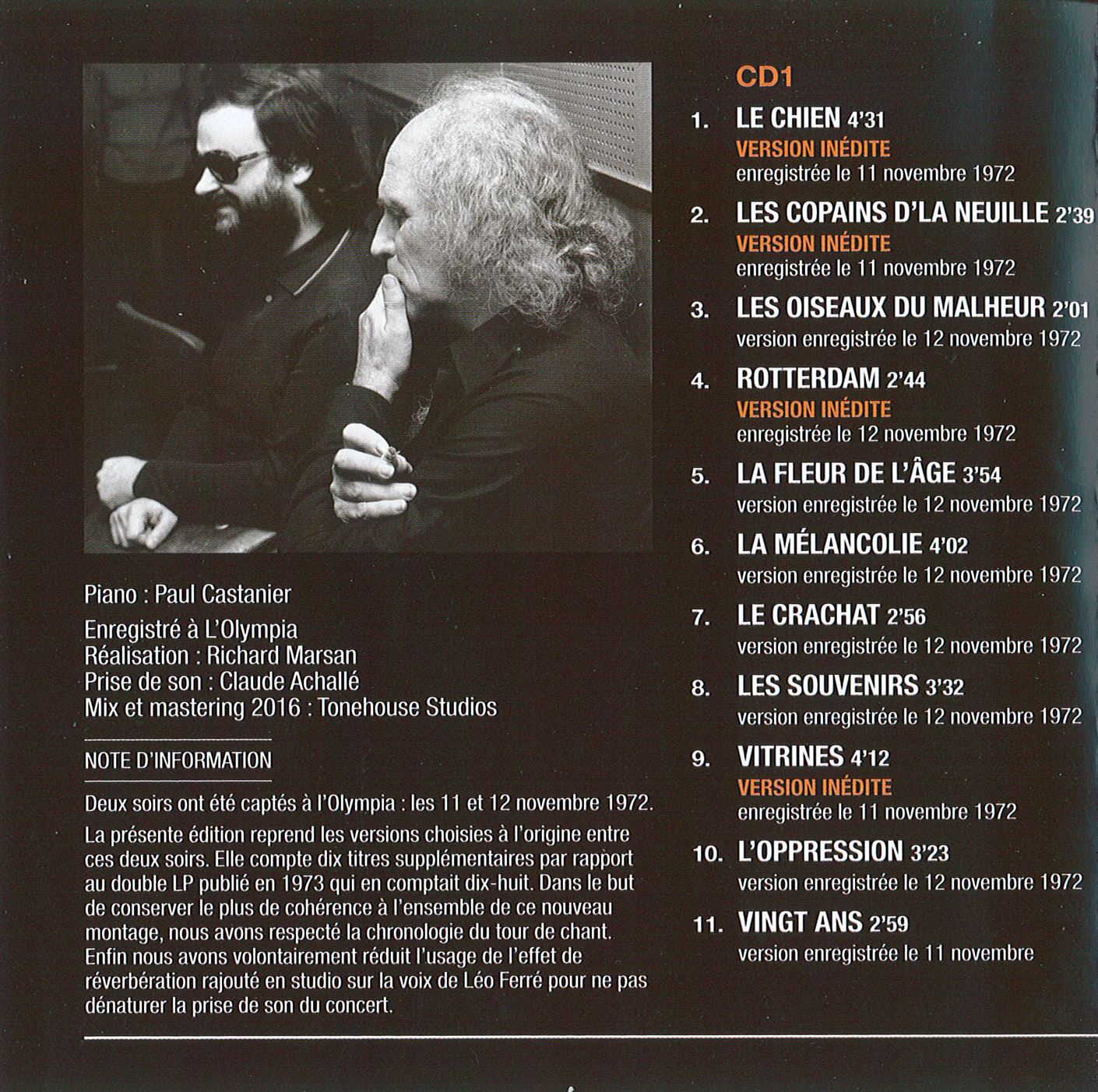 Le DVD du même nom, publié en même temps, est lui, enregistré en public à l'Olympia de Paris, en octobre-novembre 1972.