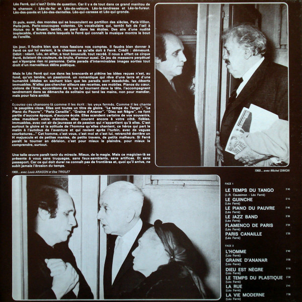 • Chansonniers - Léo Ferré et son microsillon "Avec le temps"