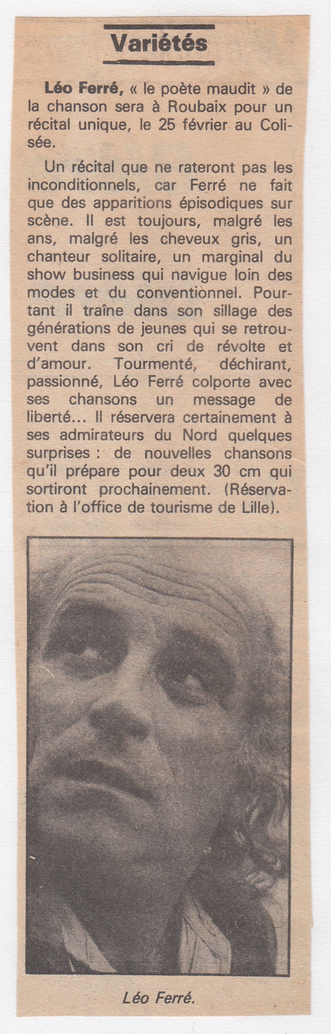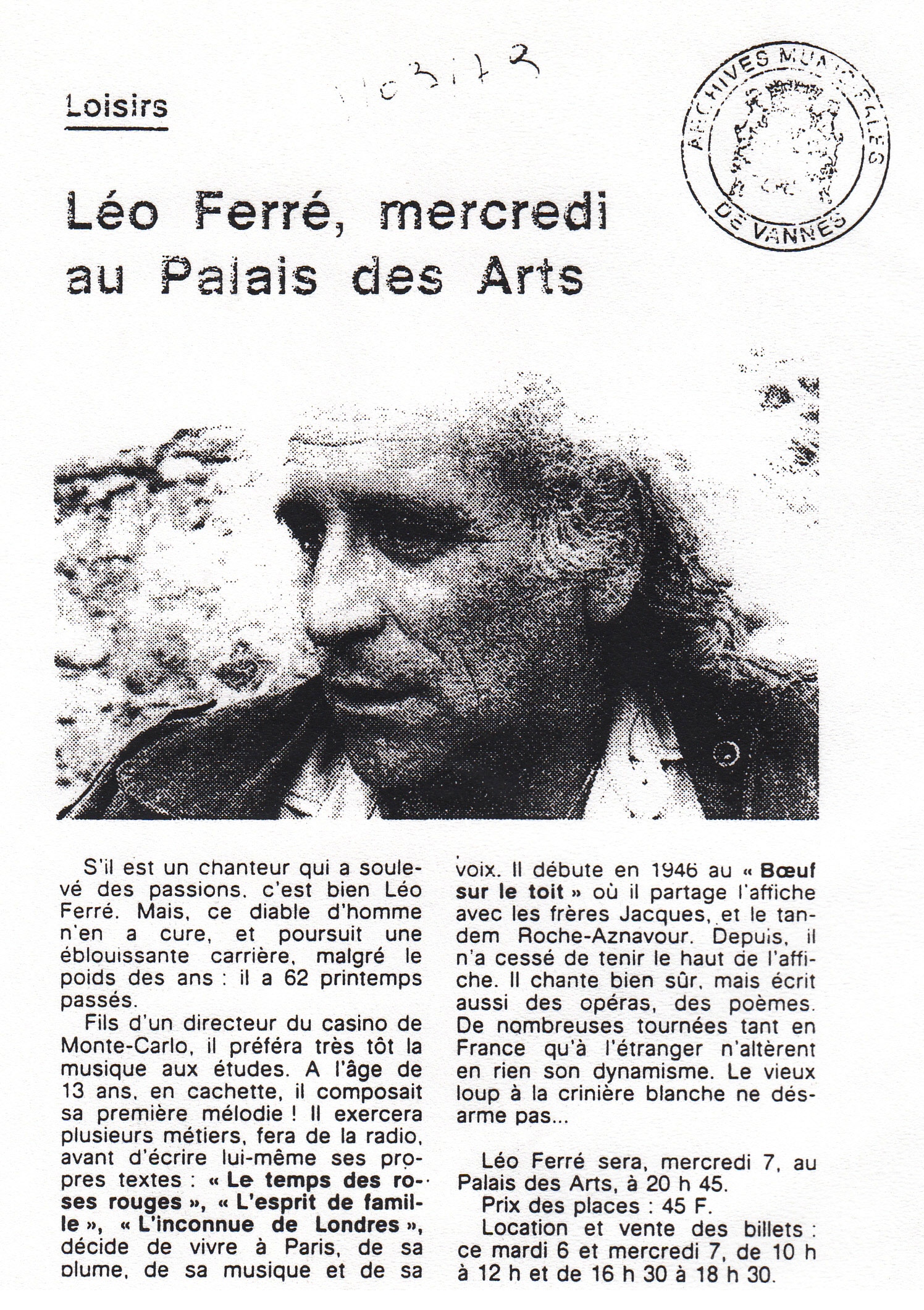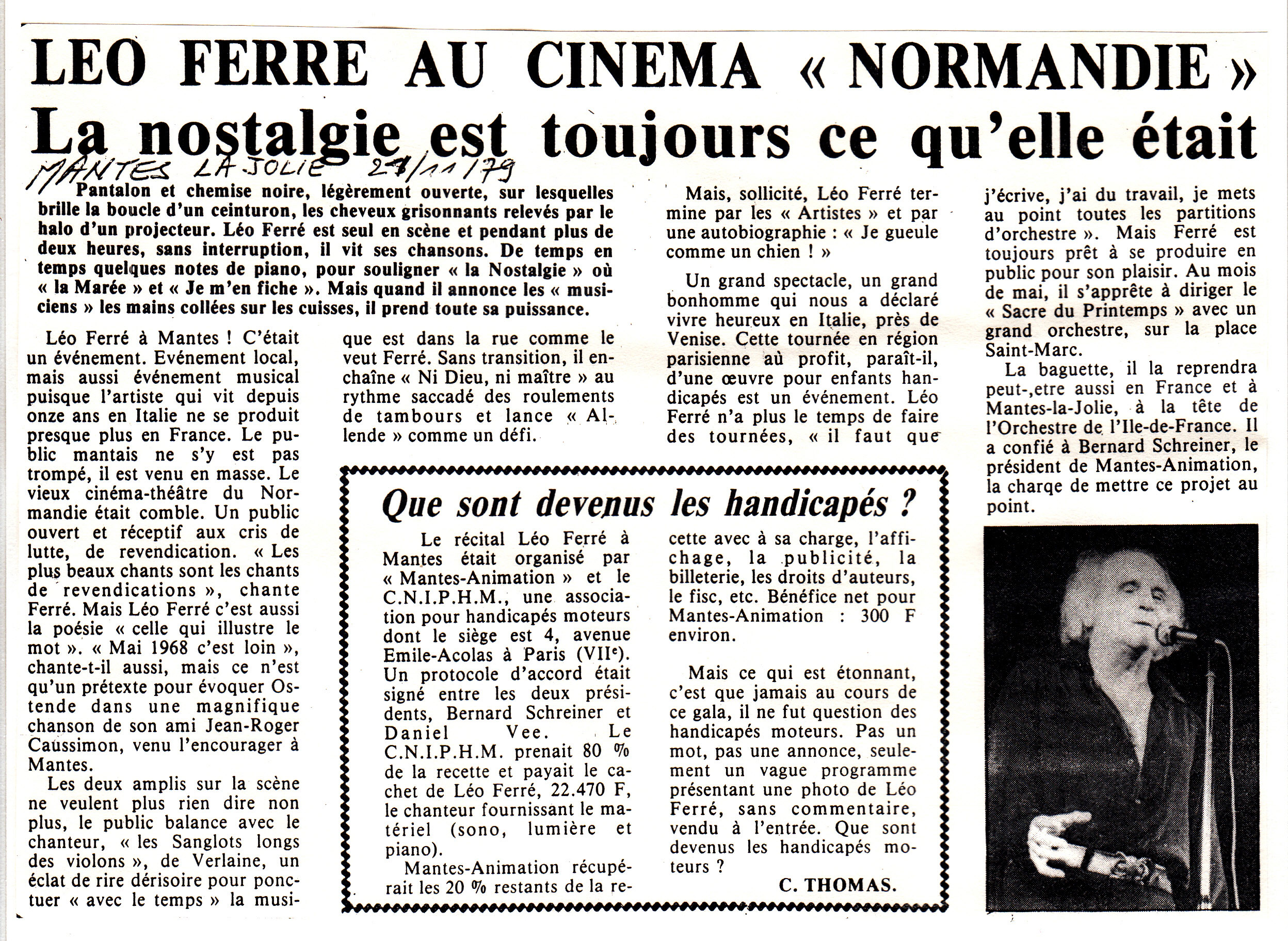 • Léo Ferré au cinéma "Normandie" - La nostalgie est toujours ce qu'elle était