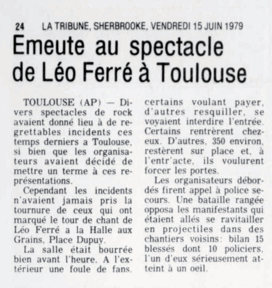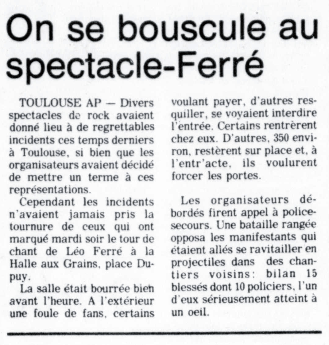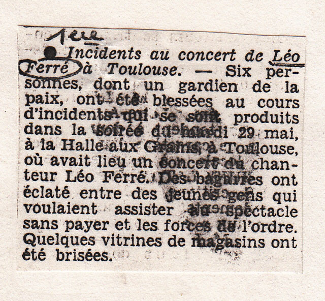 • Émeute au spectacle de Léo Ferré à Toulouse