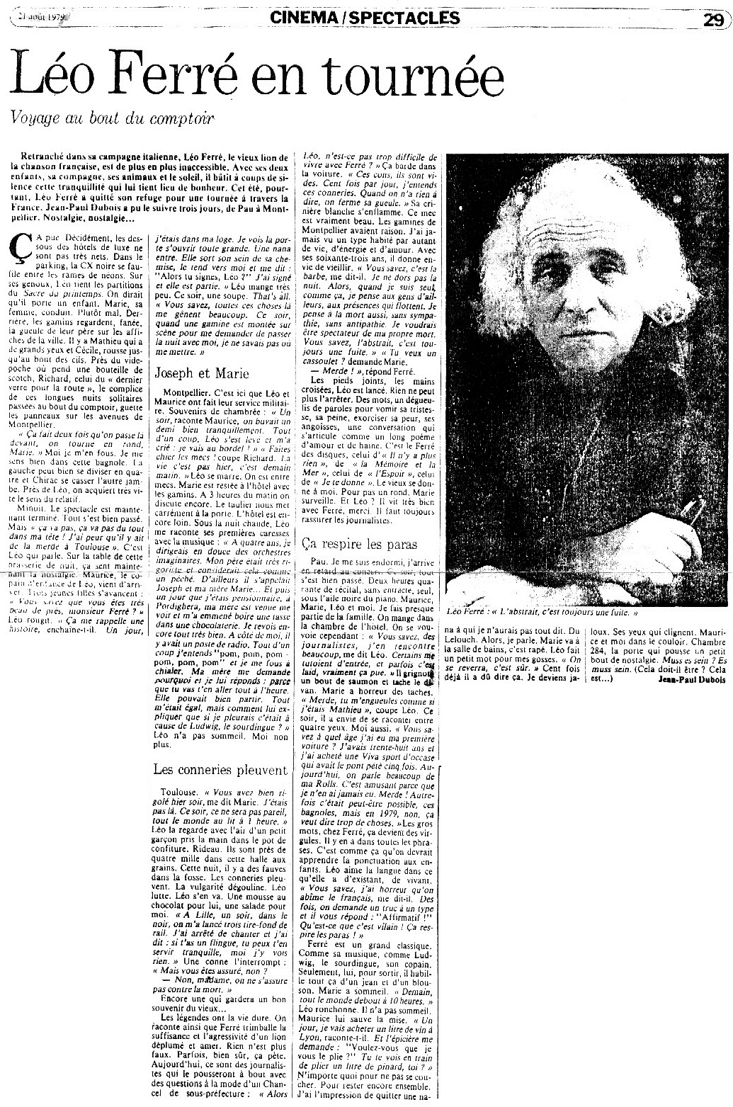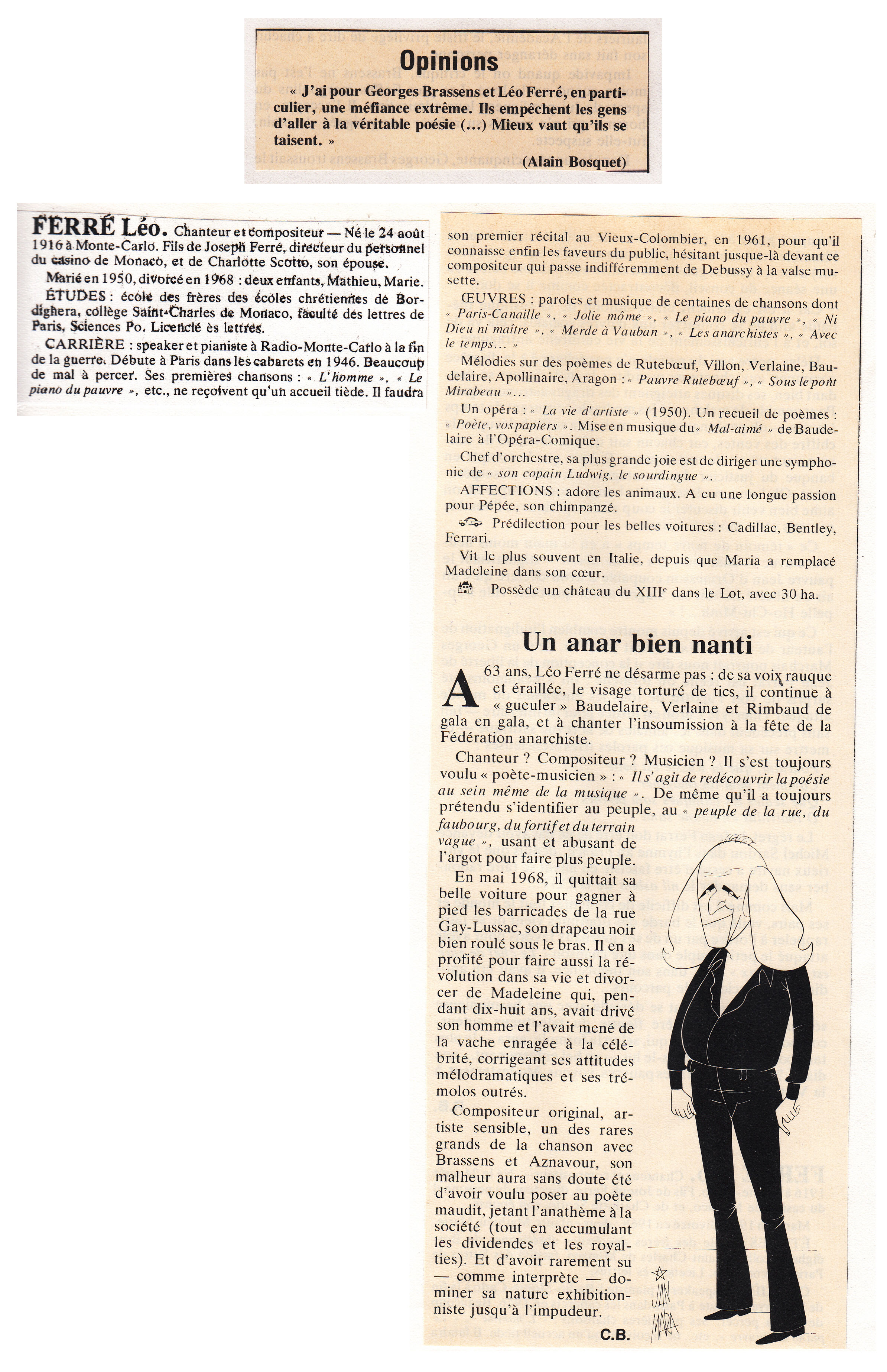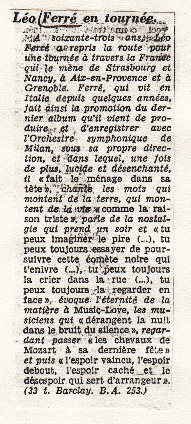 • Léo Ferré : un après-tour de chant "malhonnête mais romantique"