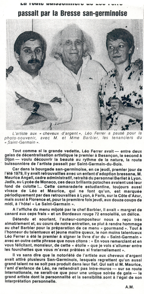 • La route buissonière de Léo Ferré passait par la Bresse san-germinoise