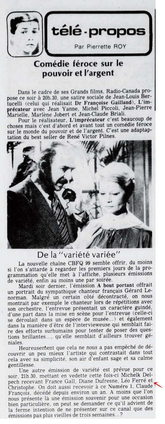 Mirages sur France Inter, émission de Jacques Pradel avec Léo Ferré comme invité. Le thème de l'émission : le paranormal...