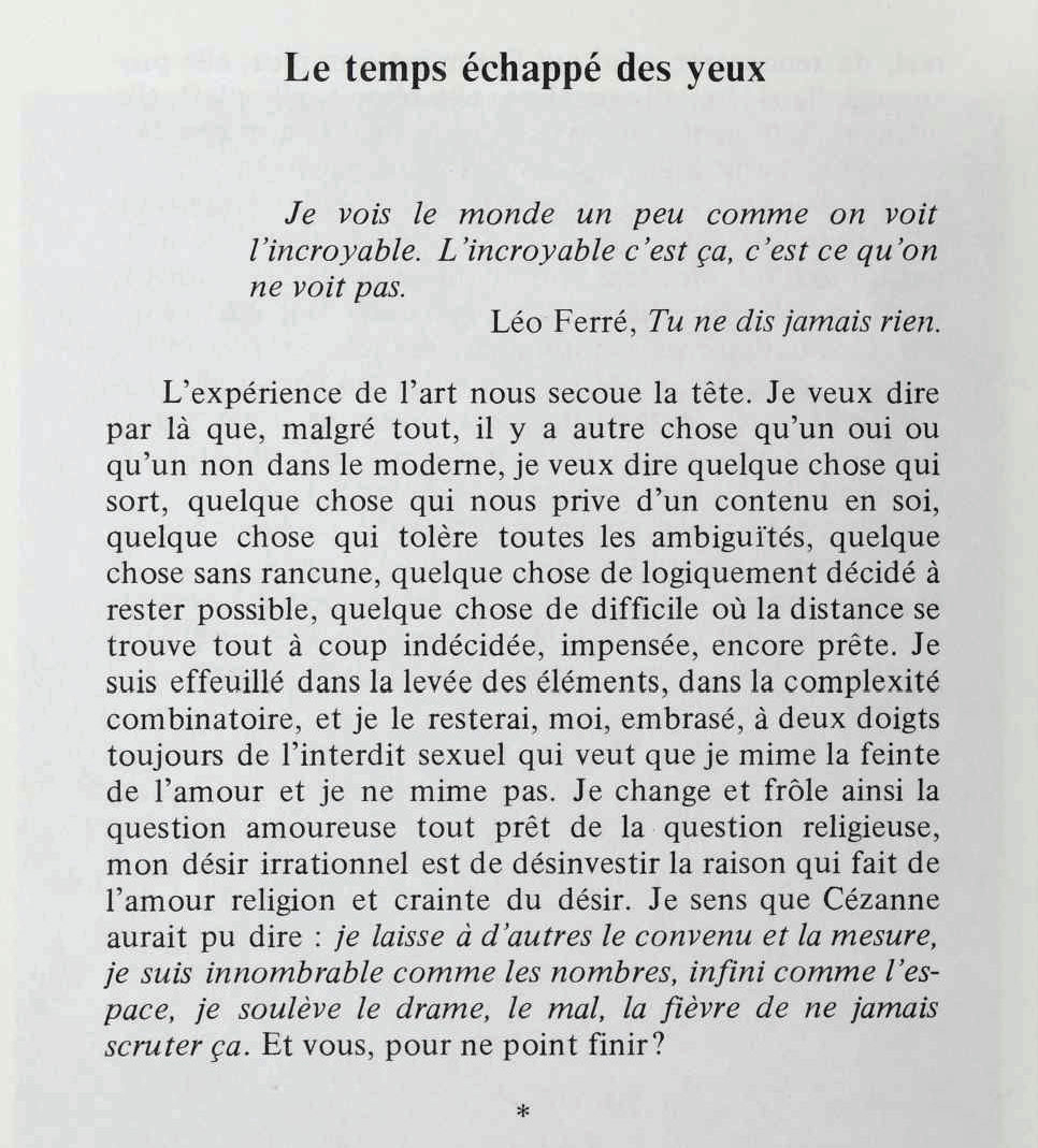 « C'est incommunicable. Je peux même pas faire participer les gens à ça... Évidemment que je peux pas leur expliquer ! C'est donc l'extrême solitude de toute façon, mais... Seul avec la musique, c'est pas mal aussi. Et puis ça parle PAS, hein !... »