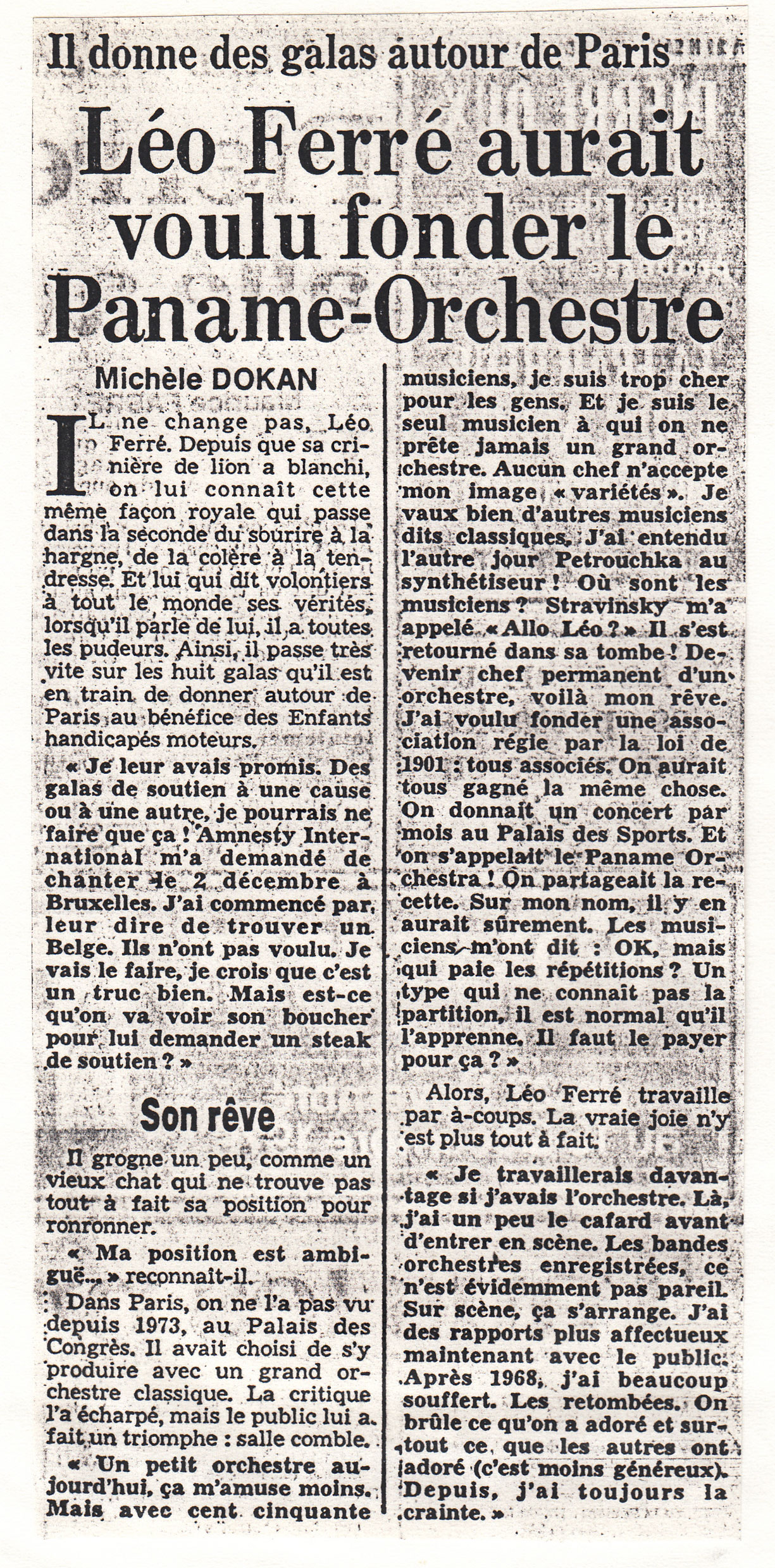 • Léo Ferré aurait voulu fonder le Paname-Orchestre